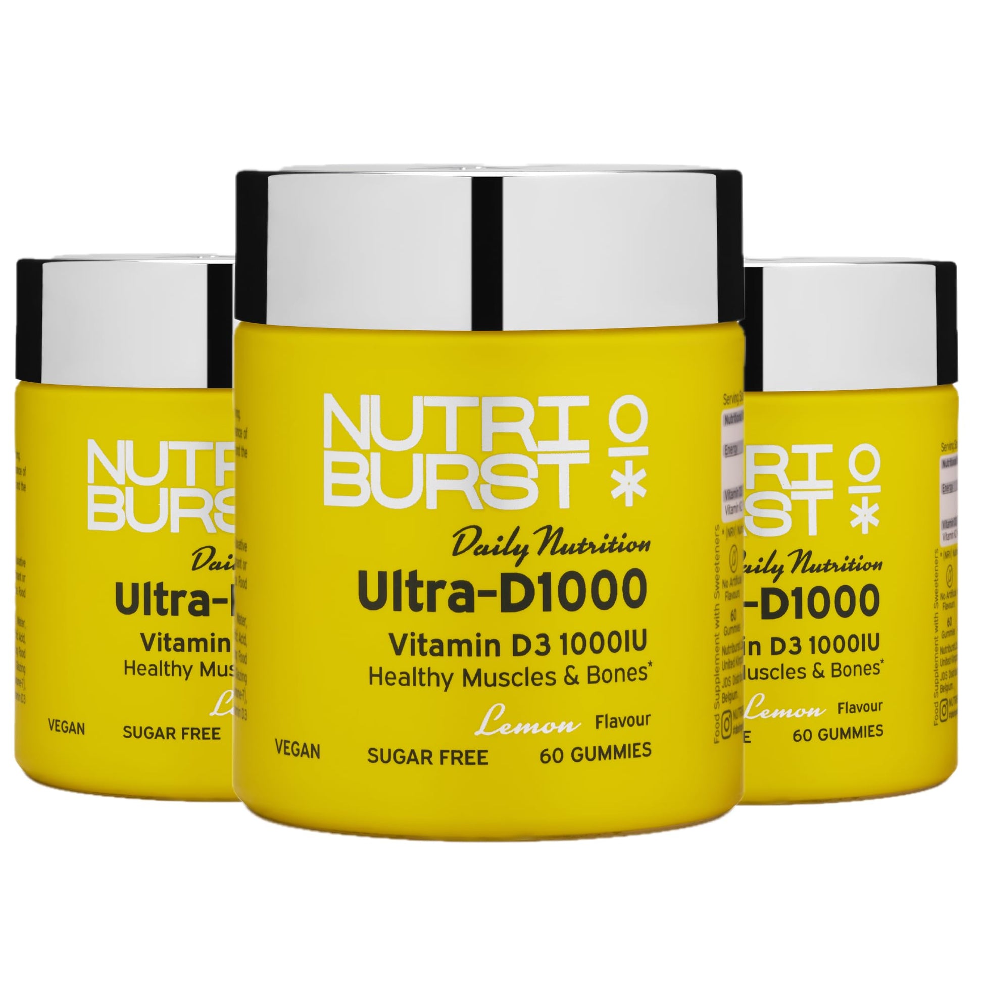 Nutriburst Ultra-D1000 Multipack - Vitamin D3 (1000IU) + Vitamin K2 (80µg) for Healthy Muscles & Bones - Lemon Flavour - 3 x 60 Gummies / 3 Month Supply - Suitable for Vegans