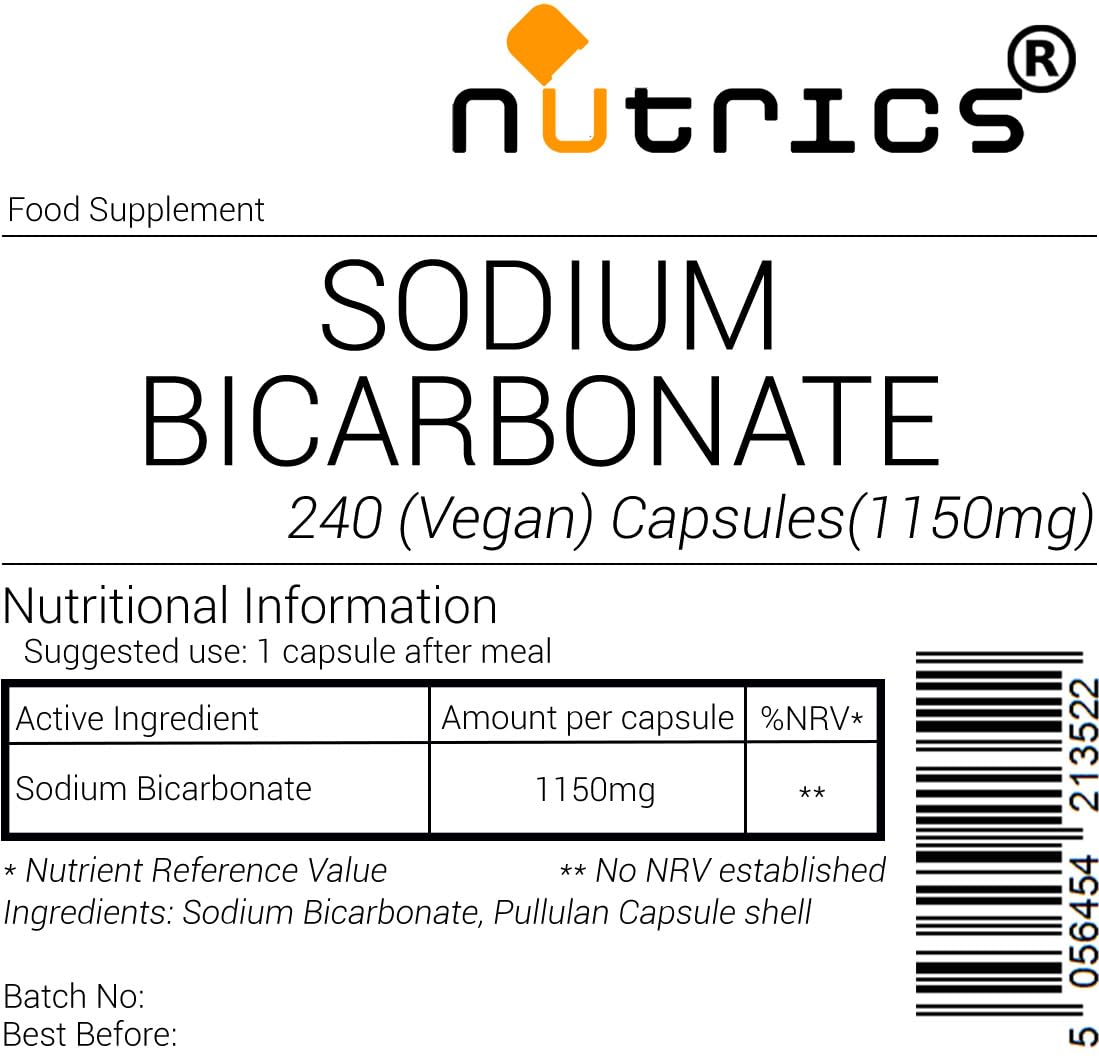 Nutrics® 1150mg Sodium Bicarbonate 100% Pure V Capsules - Suitable for Vegan Vegeatarian Halal & Kosher (240 Capsules 8 Months Supply)