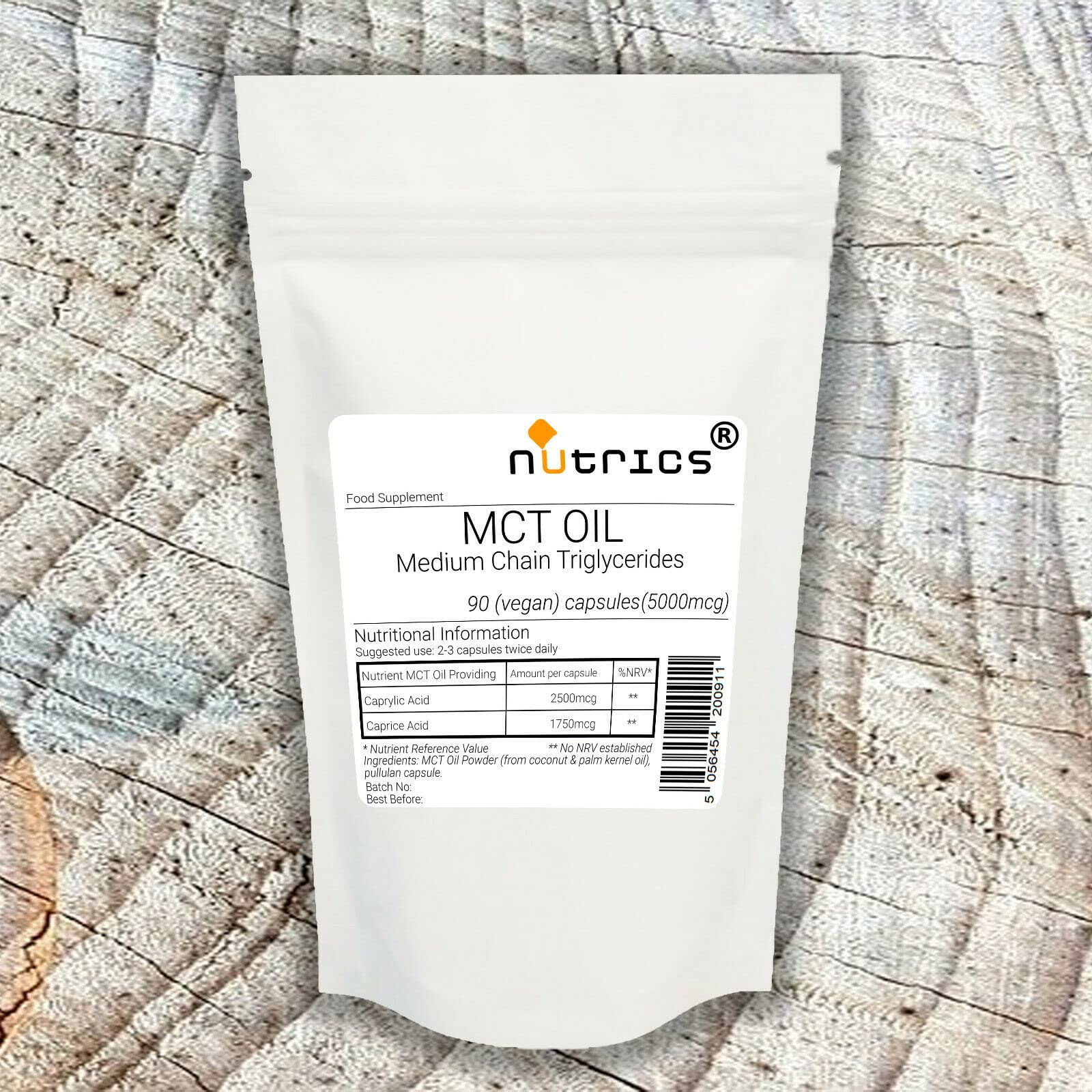 Nutrics® MCT Oil 5000mcg 90 V Capsules (1 Month Supply) Medium-Chain Triglycerides (MCTs) - Boosts Ketones - Suitable for Vegan Vegetarian Halal Kosher