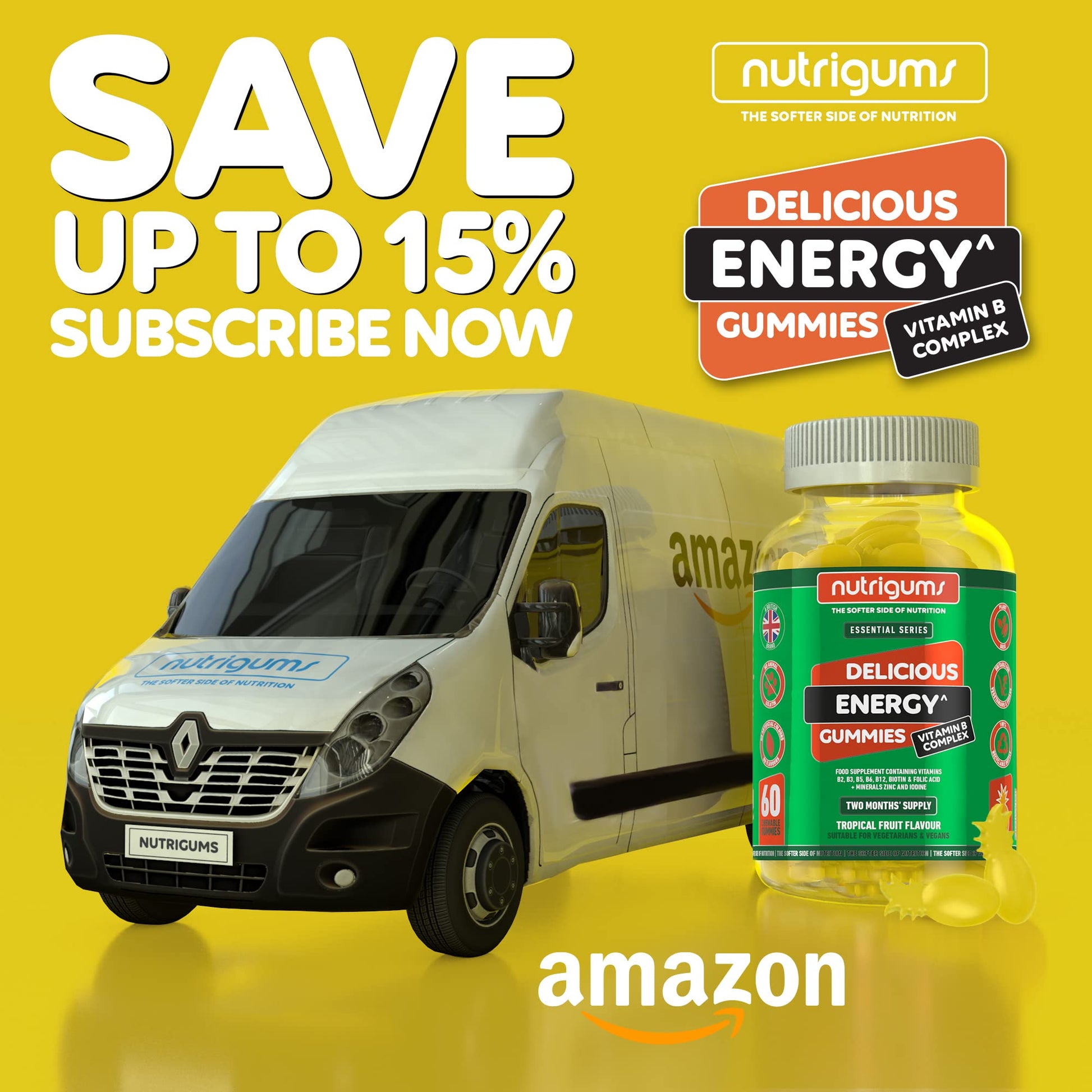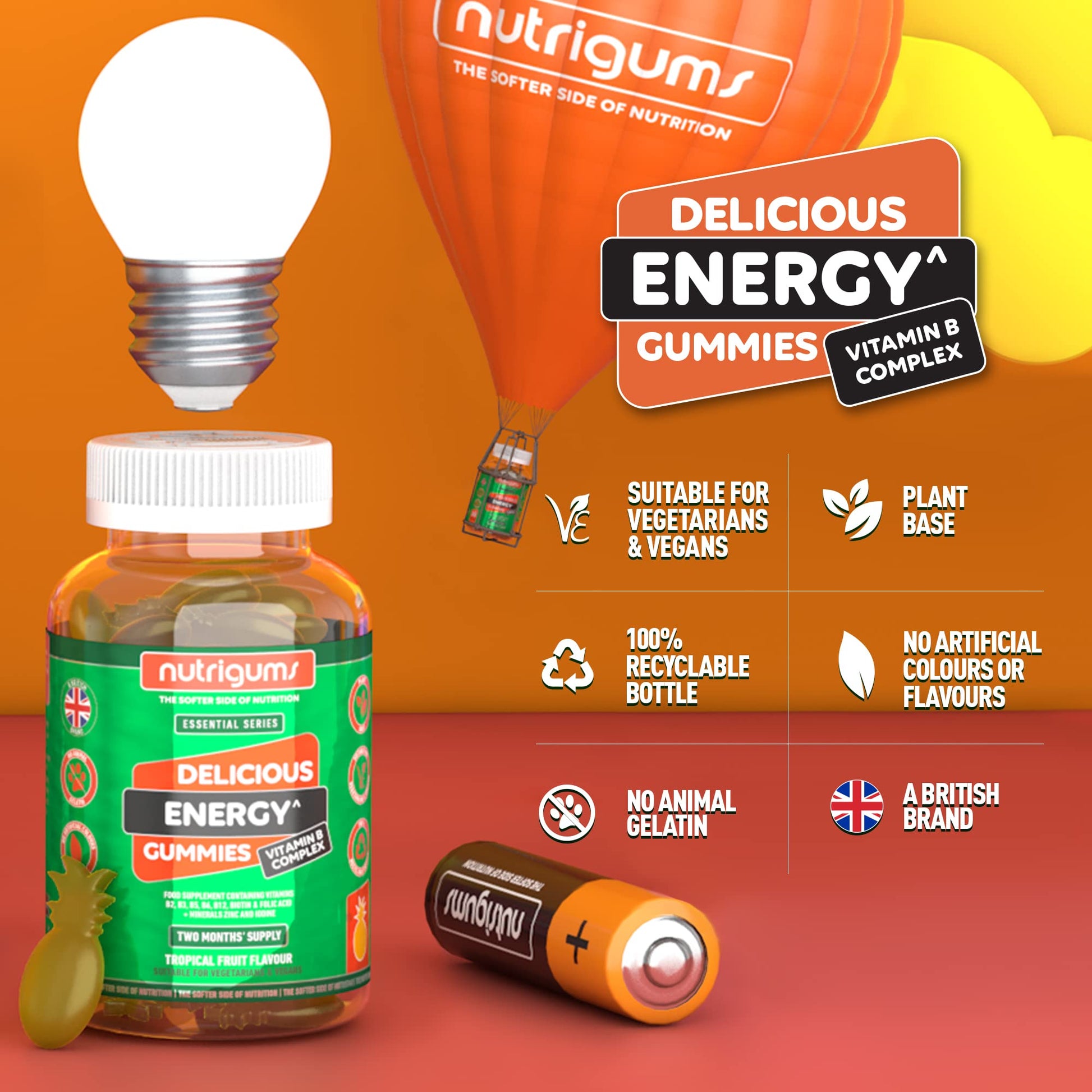 Nutrigums Energy Vitamin B Complex Vegan Tropical Fruit Flavour 60 Gummies | Two Month Supply | Vitamins B2, B3, B6, B12, B5 with Folic Acid, Zinc, Iodine & Biotin by NUTRIGUMS®