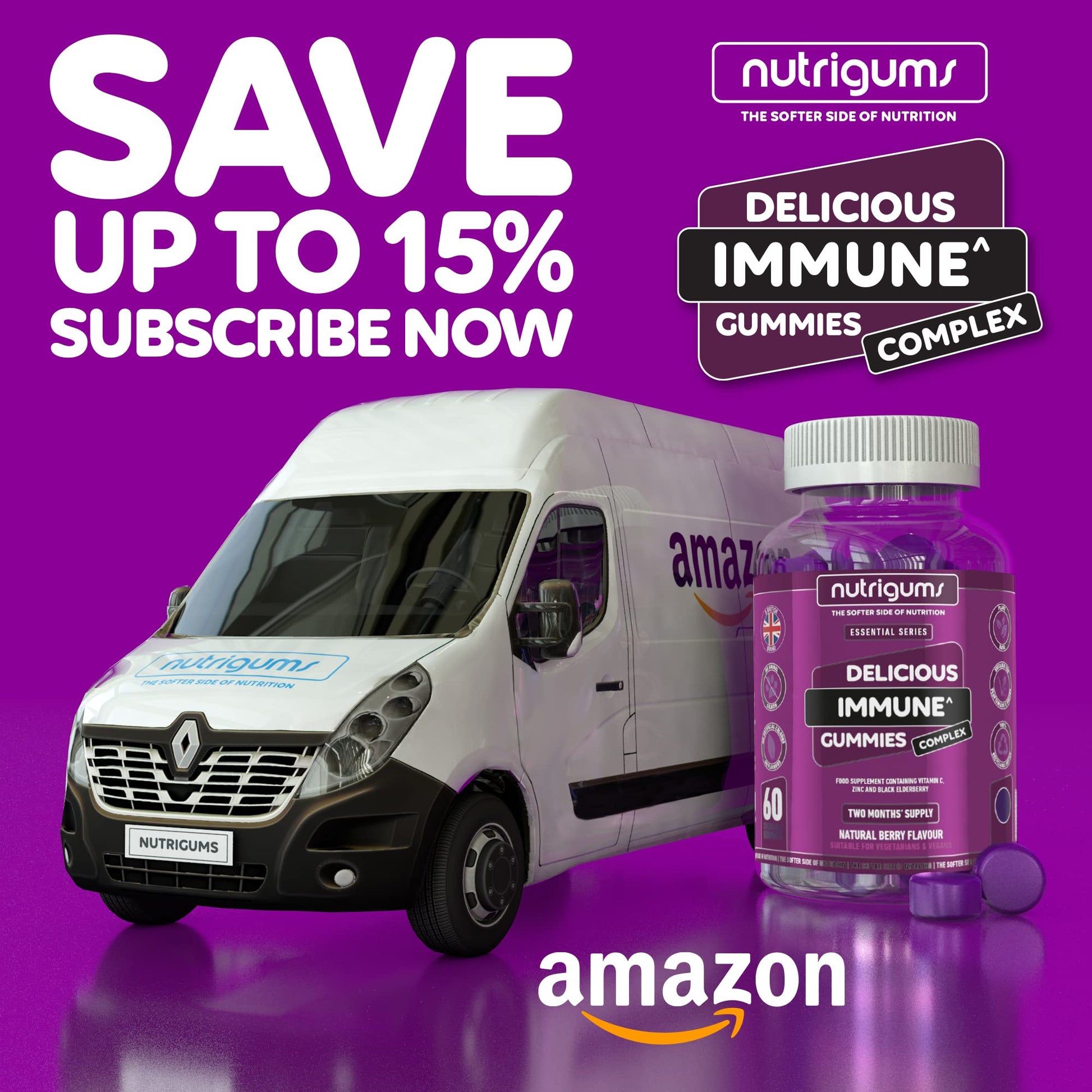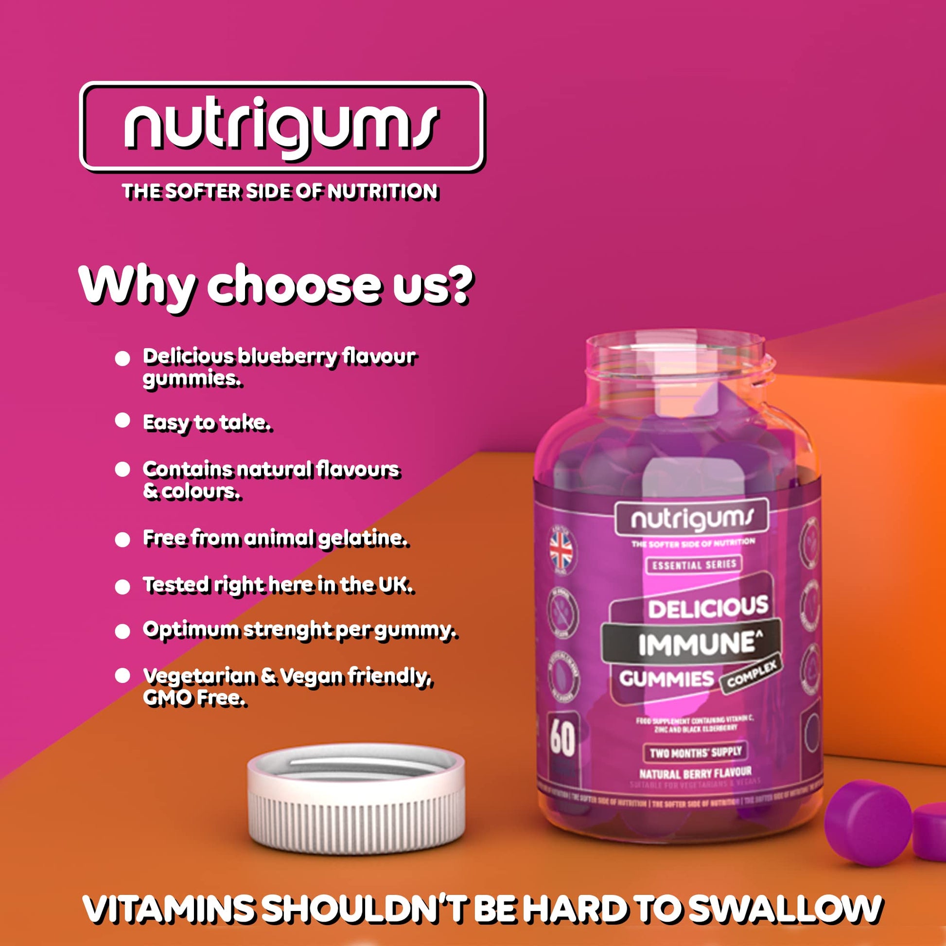 Nutrigums Immune Support 60 Blueberry Flavour Gummies | Two Month Supply | Elderberry Extract 2000mg, Vitamin C 50mg and Zinc 5mg | Vegan Friendly | Suitable for 12+ Years by NUTRIGUMS®