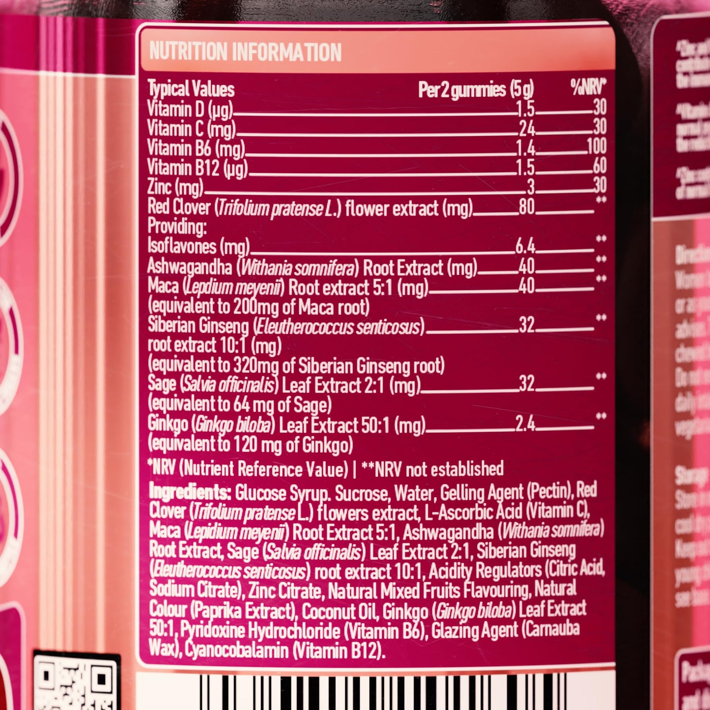 Nutrigums Perimenopause Support Gummy | Citrus Flavour | 60 Vegan Gummies | Red Clover, Ashwagandha, Maca, Ginseng, Sage, Ginkgo with VIT B6, B12, VIT D and VIT C | Nutritional Balance for Women by NUTRIGUMS®