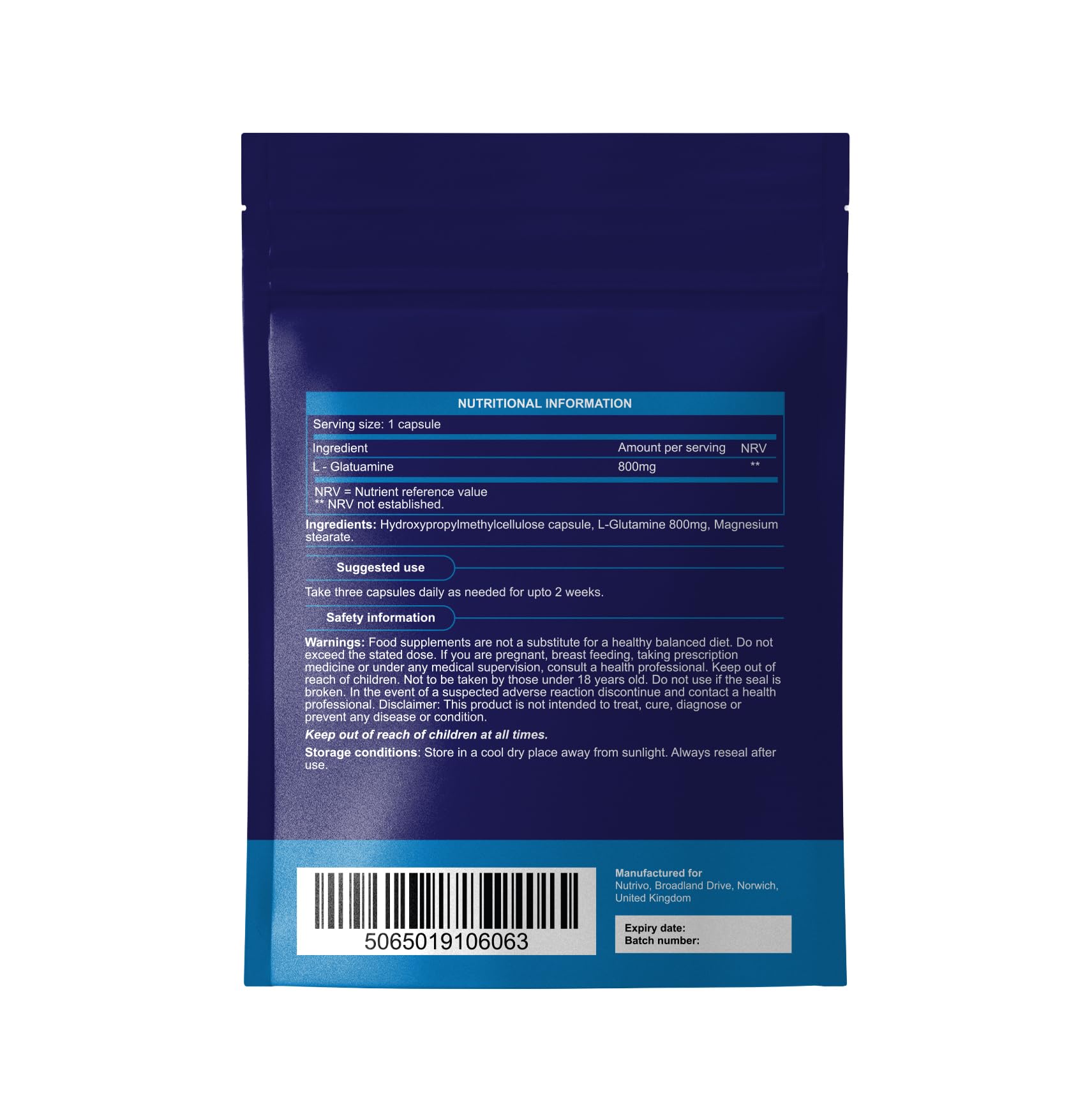 Unlock the power of L-Glutamine with our high-quality 800mg capsules, designed to support your body’s natural processes for muscle recovery, gut health, and immune function. Whether you’re a fitness enthusiast looking to speed up post-workout recovery or someone seeking better digestive balance, our premium L-Glutamine supplement delivers powerful benefits in every dose. Why Choose Our L-Glutamine Capsules? L-Glutamine is the most abundant amino acid in the body and plays a vital role in muscle repair, intestinal health, and immune support. Each capsule is packed with 800mg of pure L-Glutamine, giving your body the essential building blocks it needs to perform at its best. Our supplement is perfect for anyone looking to: Support muscle recovery and reduce post-exercise soreness Support gut health, including repairing leaky gut and promoting intestinal integrity Strengthen immune function to help the body fend off illness Vegan, Gluten-Free, and Non-GMO Formula Our L-Glutamine capsules are made with 100% vegan-friendly ingredients, are gluten-free, and contain no genetically modified organisms (GMOs). Making our supplement a clean choice for health-conscious individuals. Easy-to-Swallow Capsules for Convenient Use Unlike L-Glutamine powders, which can be messy and hard to measure, our capsules offer a simple and convenient alternative. With 90 capsules in each bottle, you’ll have a one-month supply of L-Glutamine, ensuring you stay on track with your health goals. Experience the Benefits of L-Glutamine Today! Whether your goal is faster recovery, improved digestion, or a stronger immune system, our L-Glutamine 800mg capsules are the perfect addition to your daily routine. Support your body naturally and effectively with the amino acid it needs most.More Info