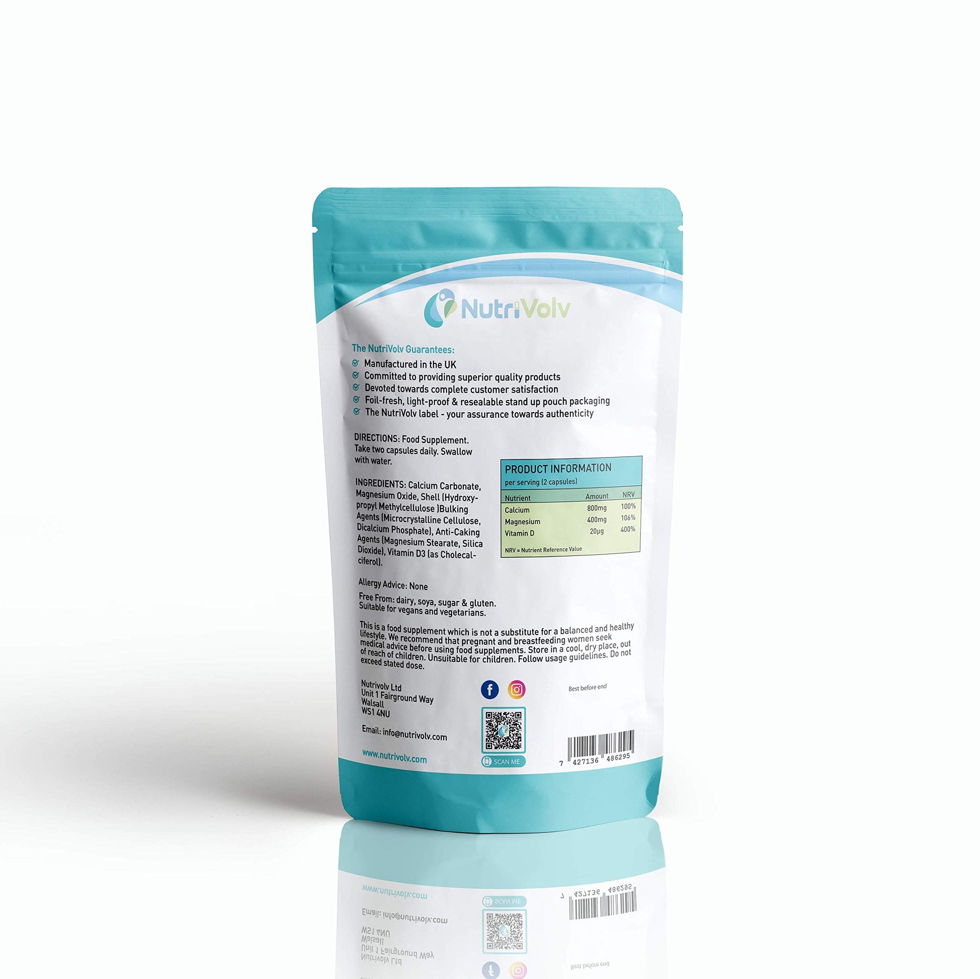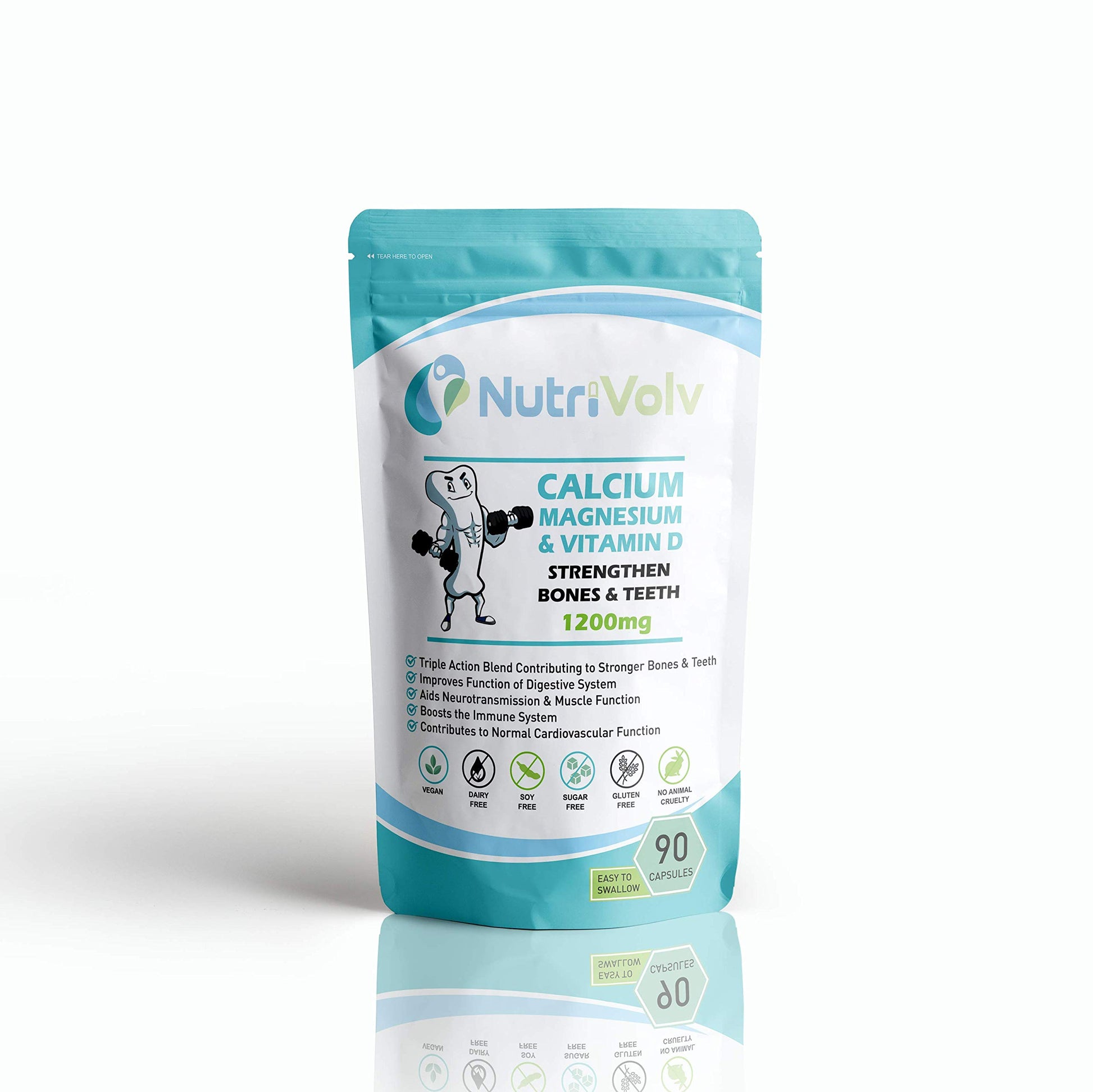 NutriVolv Calcium Magnesium & Vitamin D High Strength Vegan Capsules Strengthen Bones & Teeth & Joints Support | 90 Capsules