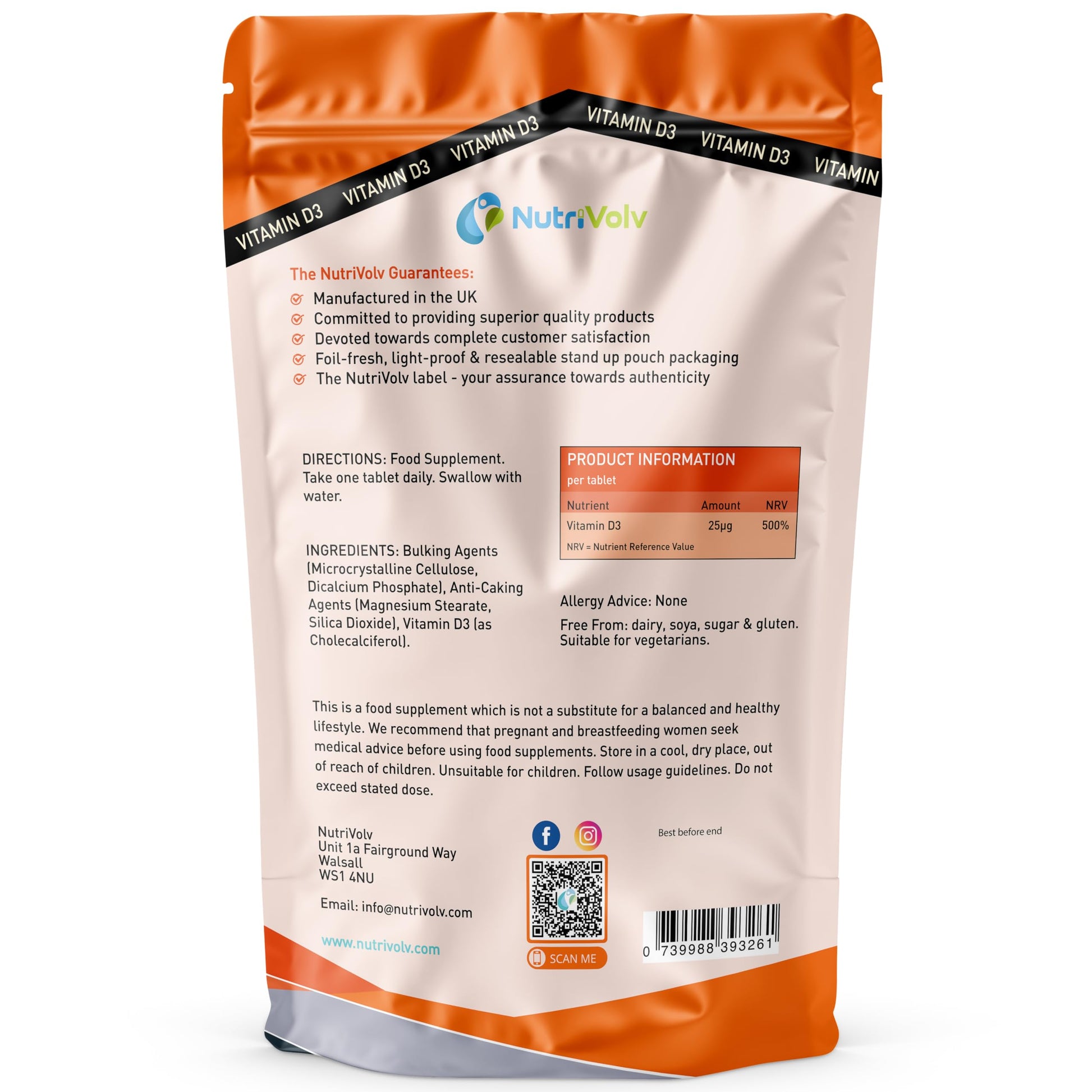 Nutrivolv Vitamin D 1000IU | 1 Year Supply | 365 Easy-Swallow Vitamin D3 Vegetarian Tablets | High Strength | Immune & Bone Support Supplement | General Health & Wellbeing | 25µg