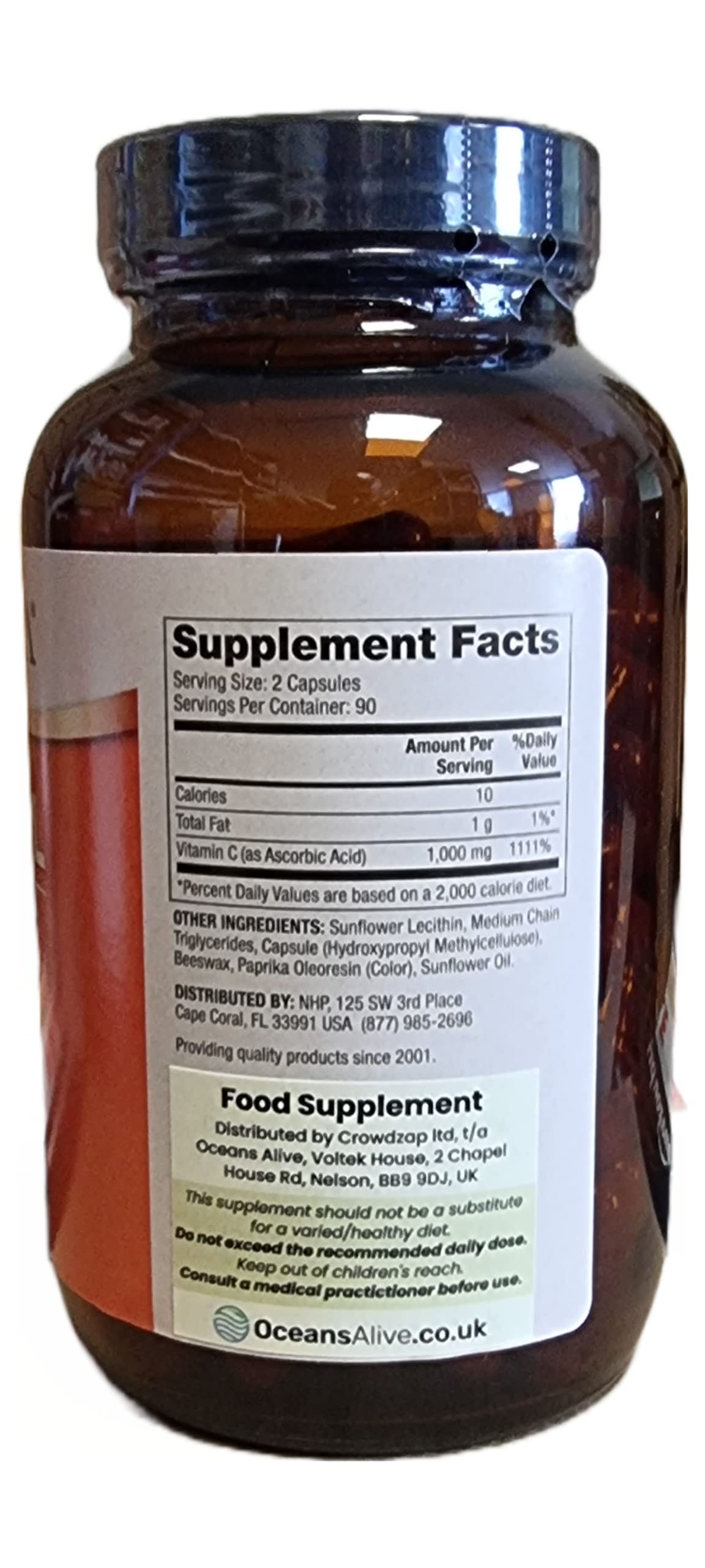 Oceans Alive Mercola Liposomal Vitamin C Dietary Supplement, 1,000mg per Serving, 90 Servings (180 Capsules), Immune Support, Non GMO, Soy Free, Gluten Free