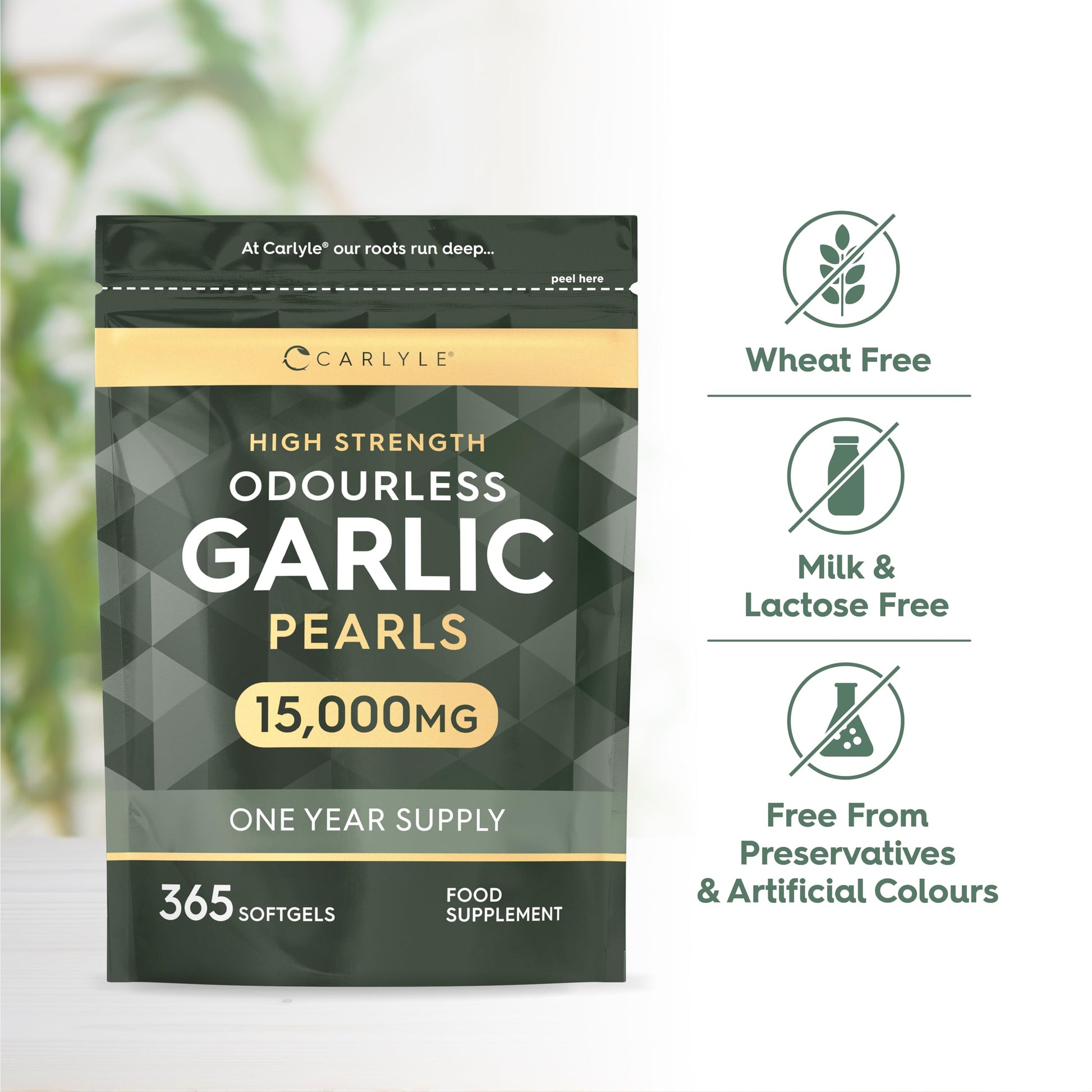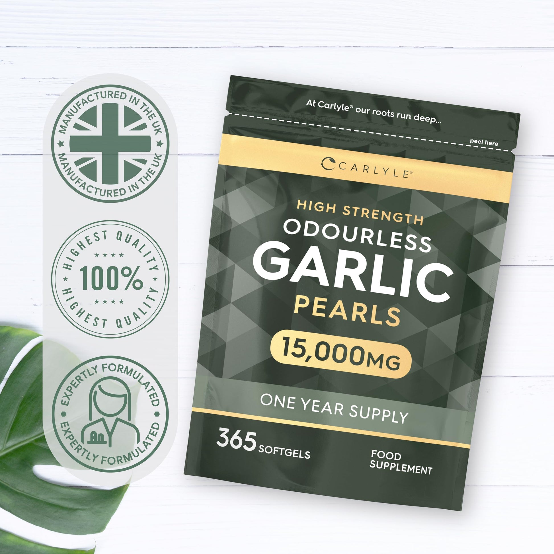 Odourless Garlic Capsules 15000mg | 365 Count | High Strength Garlic Oil | One Year Supply | No Artificial Preservatives | by Carlyle