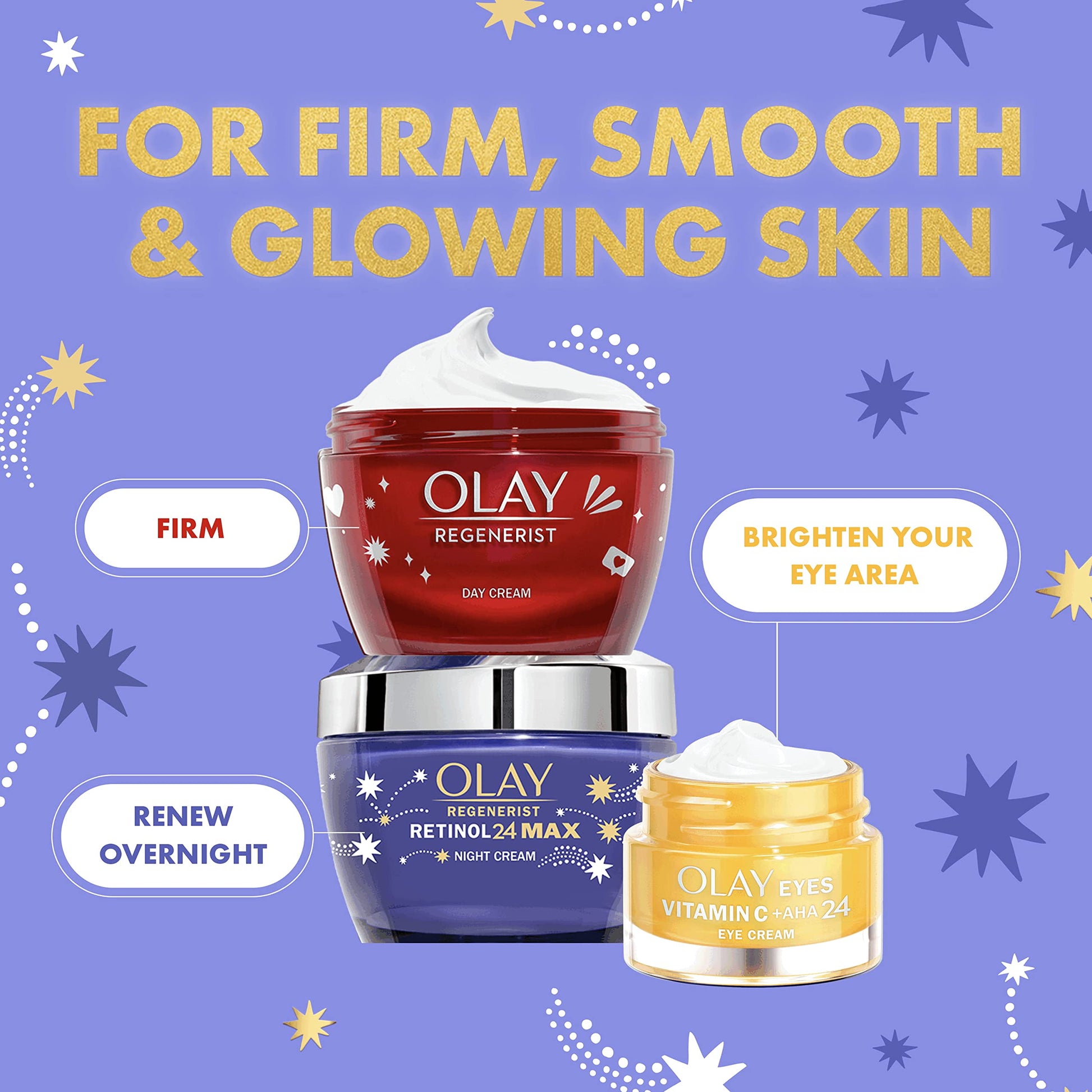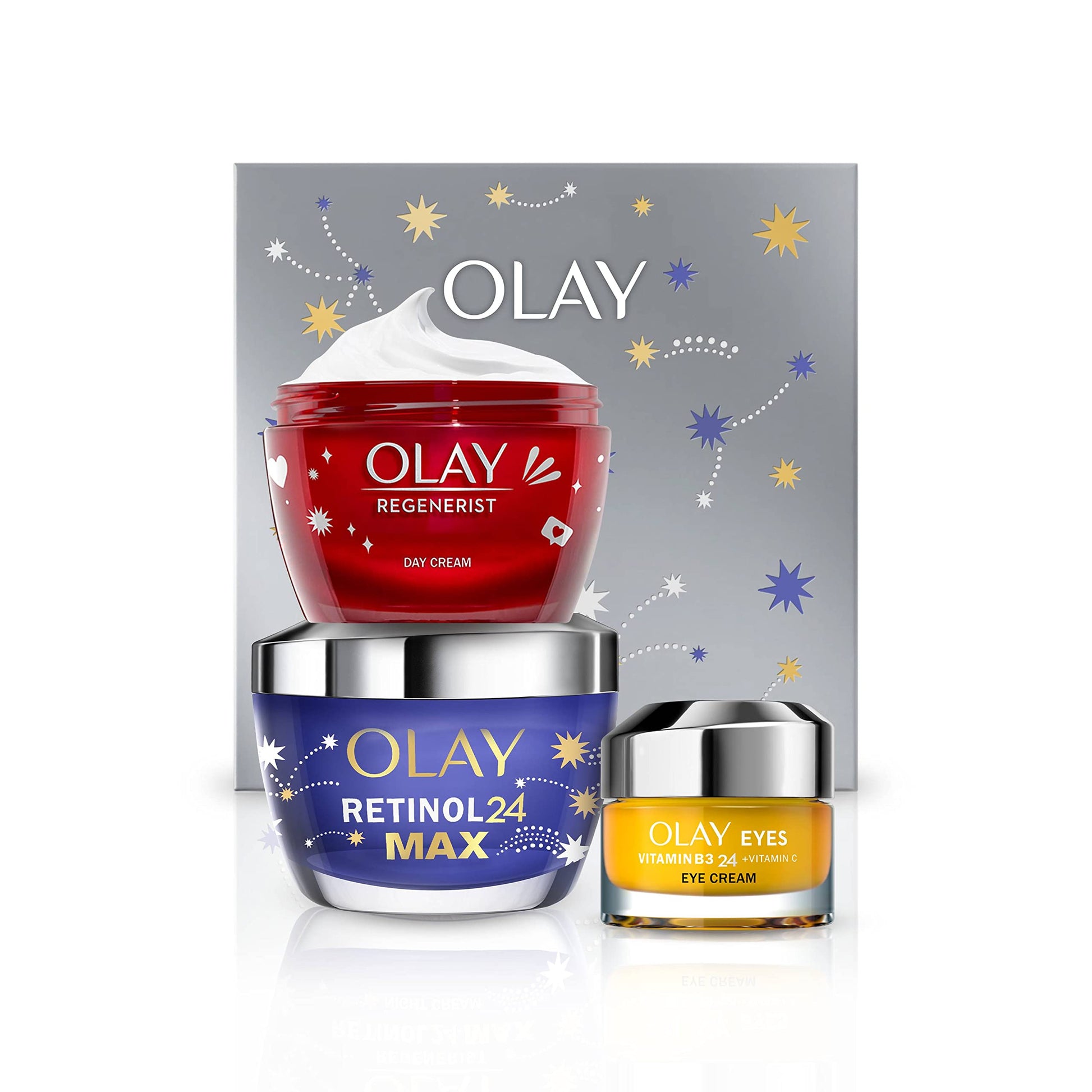 Olay Moisturiser Gift Box, Womens Skin Care Gift Sets & Kits, Vitamin C + AHA 24 Eye Cream 15ml, Retinol 24 MAX Night Cream 50ml & Regenerist Face Cream 50ml for Smooth & Glowing Skin