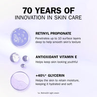 - Supercharged with Retinyl Propionate that penetrates deep to smooth skin texture, antioxidant Vitamin E and +50% Glycerin
