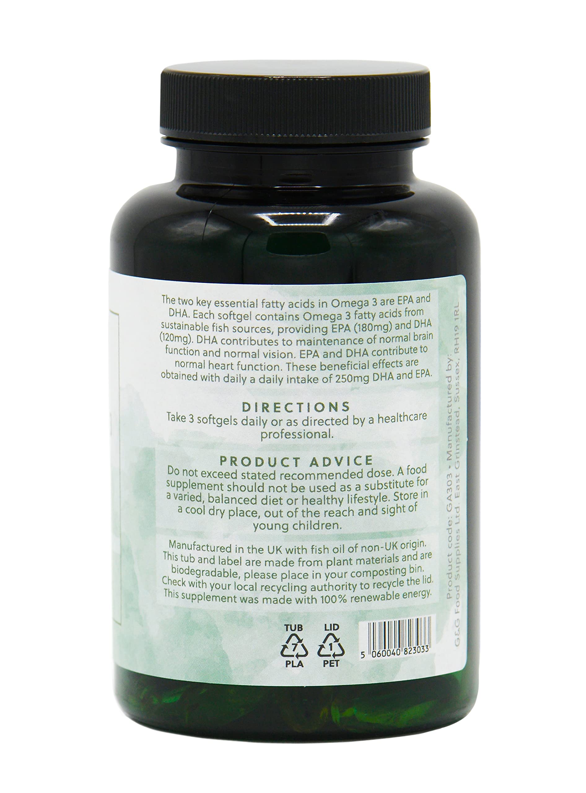 - 3 SOFTGEL DOSE: This supplement is intended to be taken as a 3 softgel dose, each softgel containing 1000mg of Fish Oil.