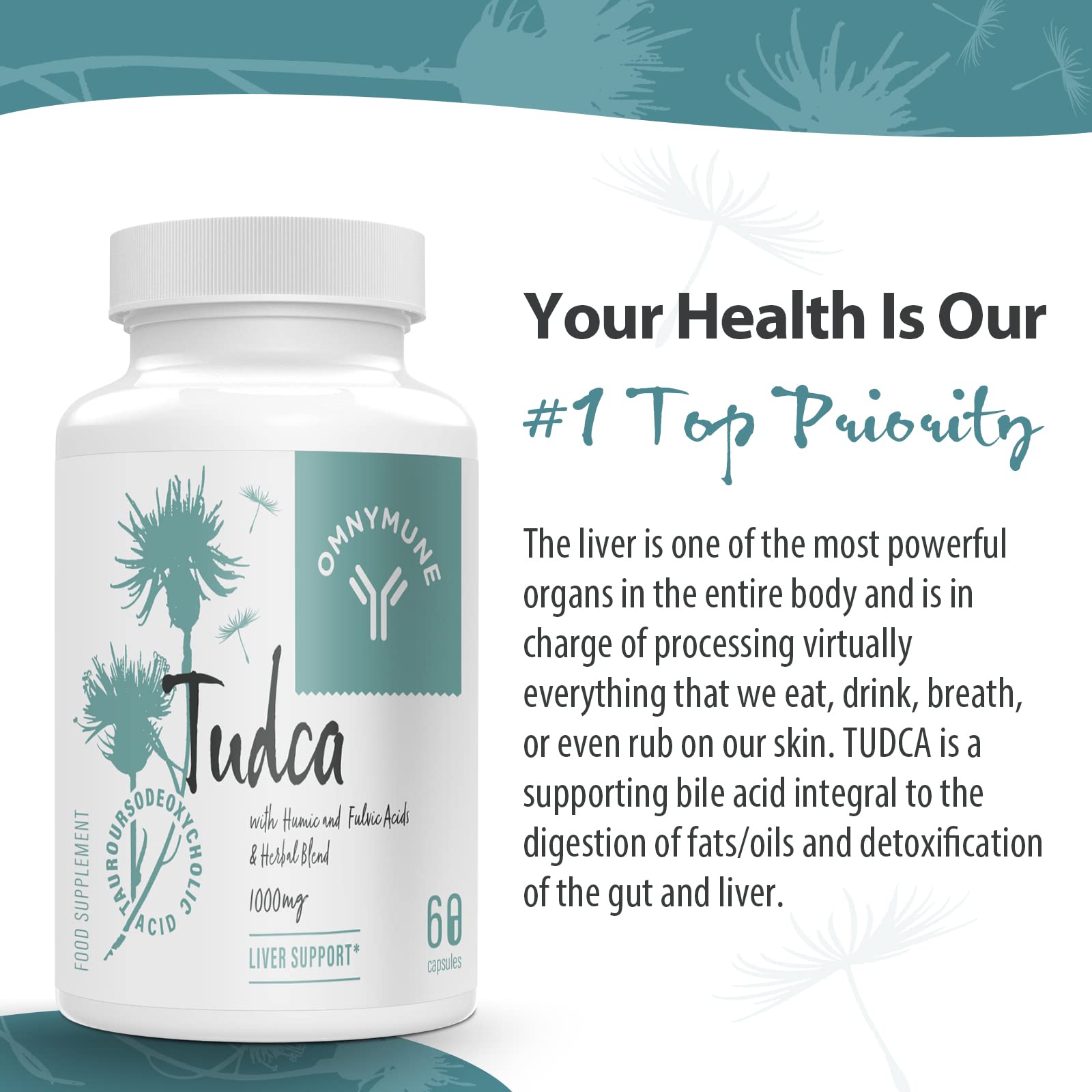 - High Potency - OMNYMUNE TUDCA supplement 1000mg is more potent formula when compared to regular TUDCA. The powerful combination of tauroursodeoxycholic acid and humic and fulvic acids and other herbal blend is a formula like no other, which made our product a strong liver support supplement that may promotes liver detox and cleanse.