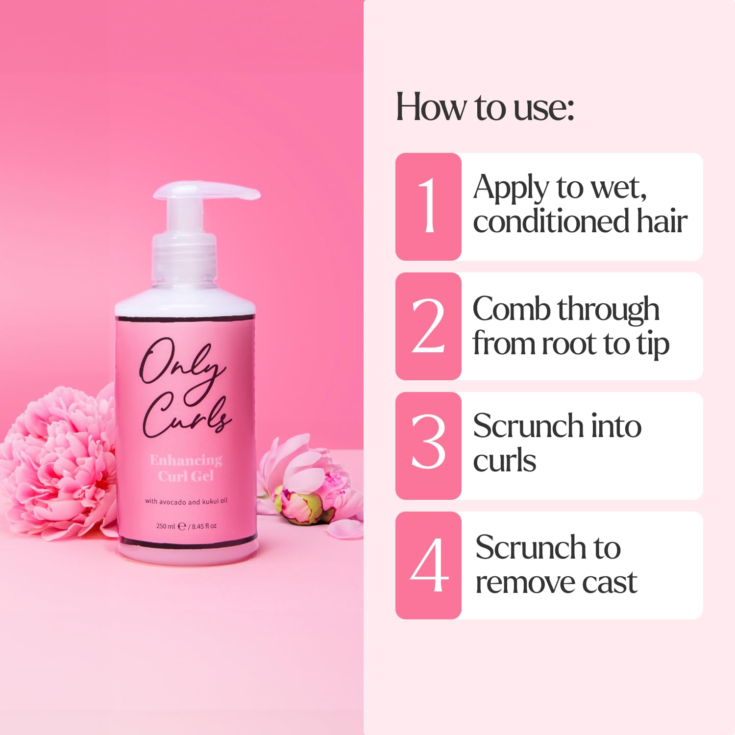 Only Curls Enhancing Curl Gel 250ml (8.45 fl oz) – Lightweight, Frizz-Control Styling Gel for Defined, Long-Lasting, and Hydrated Curls – Vegan & Cruelty-Free