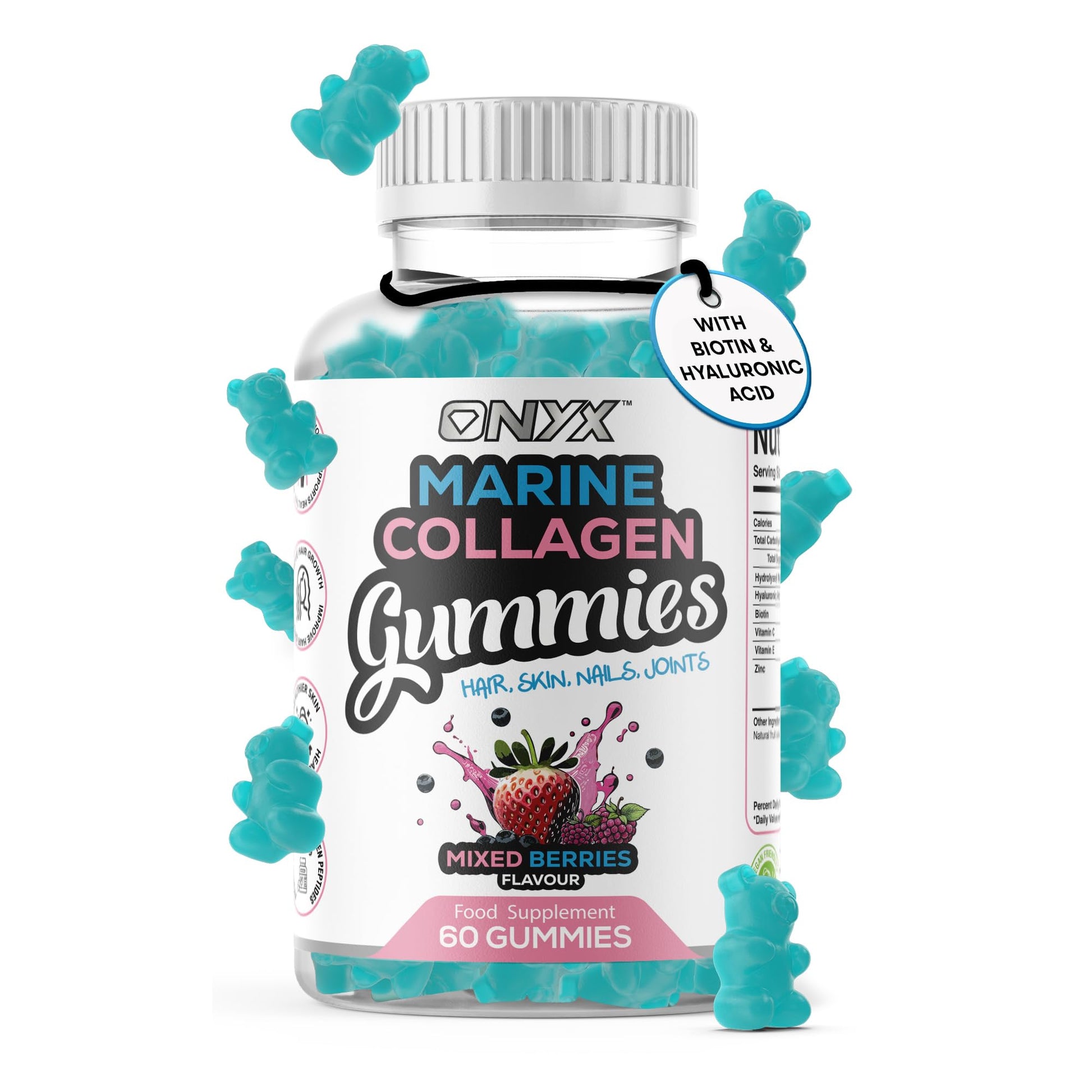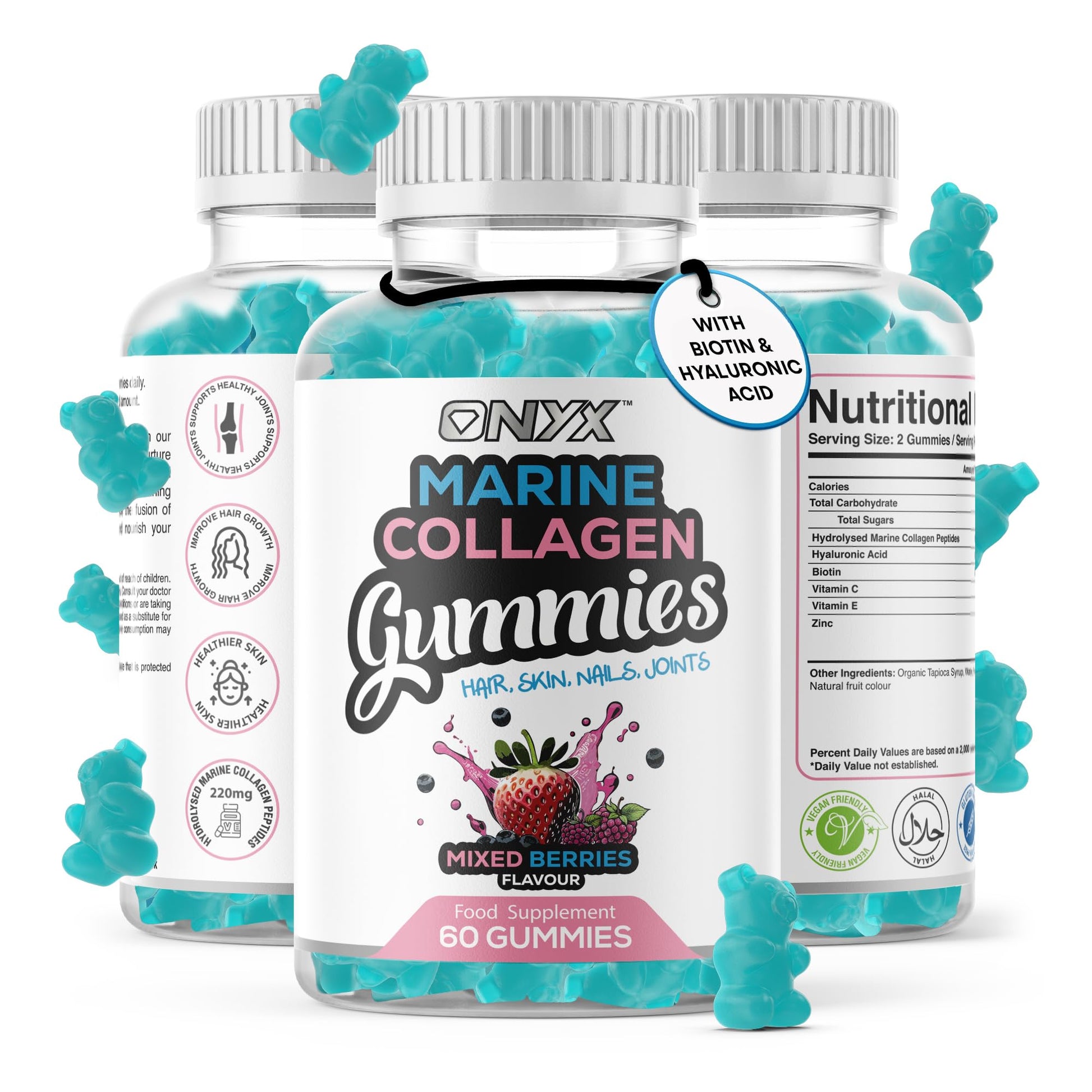 ONYX INGREDIENTS 101 Onyx Marine Collagen 2200mg with Hyaluronic Acid & Biotin - High Strength Collagen Supplements for Women & Men - 60 Vegan Gummies