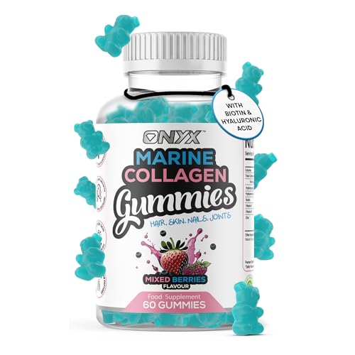 Collagen is a building block found in skin, joints, bones, teeth, muscles, and more. As we age, we produce less than we need. SuperSelf high strength marine collagen capsules are as effective as collagen powder and more convenient. The daily dose contains 2200mg of Marine Collagen. Each pack contains 60 Gummies (1-month supply) COLLAGEN SUPPLEMENTS FOR WOMEN AND MEN - Onyx collagen complex is a blend of marine collagen powder, hyaluronic acid and vitamin C. While Hyaluronic acid is a popular skin-friendly ingredient, Vitamin C also contributes to collagen formation for the function of skin and bones. These collagen gummies are suitable for women and men and contain an appropriate daily dose of all three supplements.More Info