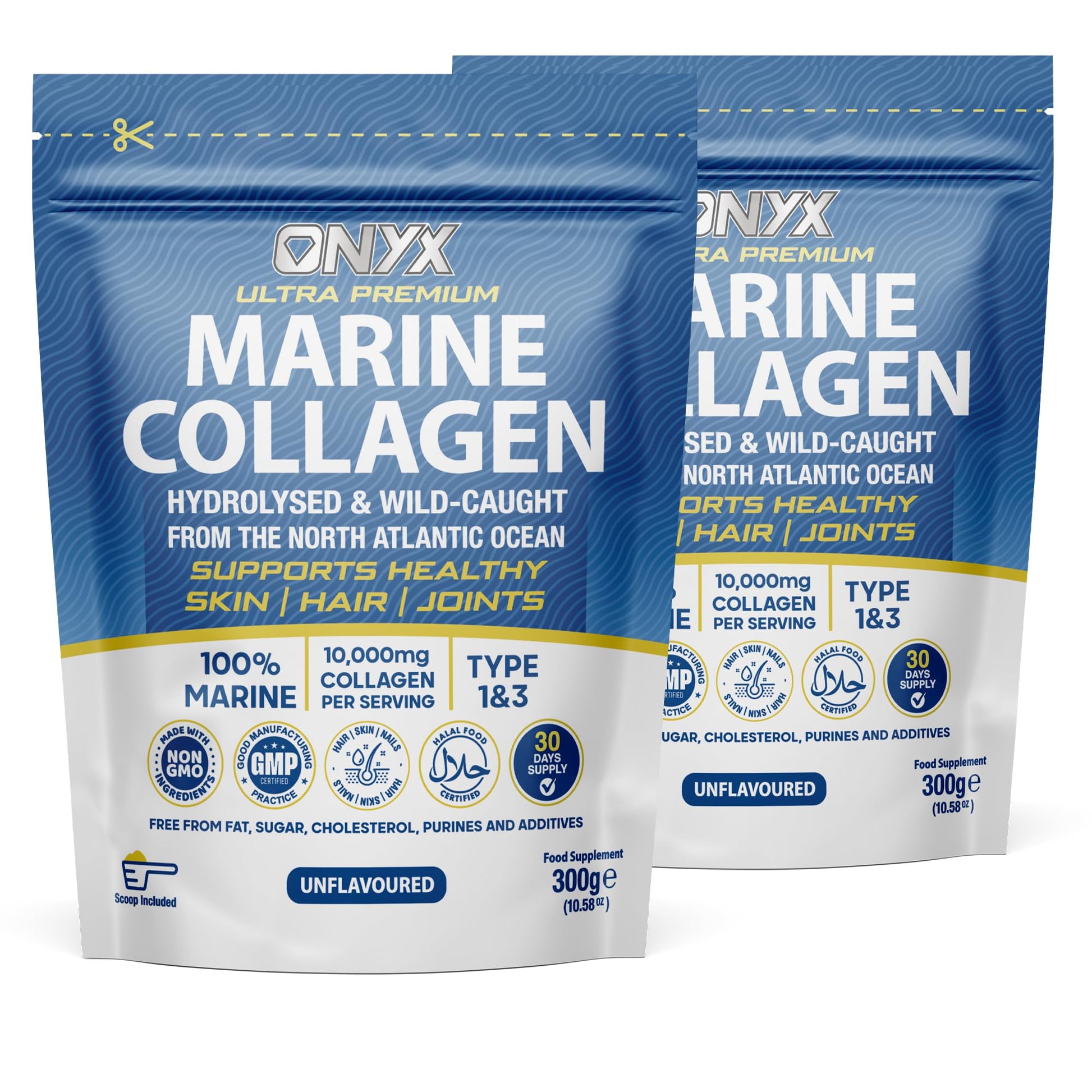 Perfect for both men and women seeking to maintain youthful vitality, our Marine Collagen is a versatile addition to any wellness regimen. It supports hair growth, nail strength, and joint flexibility, while also aiding in post-workout muscle recovery and fat burning. Plus, it's non-GMO, gluten-free, and suitable for keto and paleo diets, ensuring compatibility with a wide range of lifestyles. Invest in your health and beauty with ONYX Marine Collagen Powder 10000mg by ONYX, and experience the transformative benefits of premium collagen supplementation.