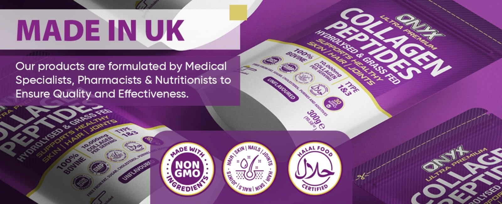 ONYX INGREDIENTS 101 Premium Collagen Powder 300g Hydrolysed Bovine Collagen Peptides Powder - Halal Certified - Healthy Skin, Hair & Joints - Collagen Supplements for Women & Men (30 Days Serving 300g)