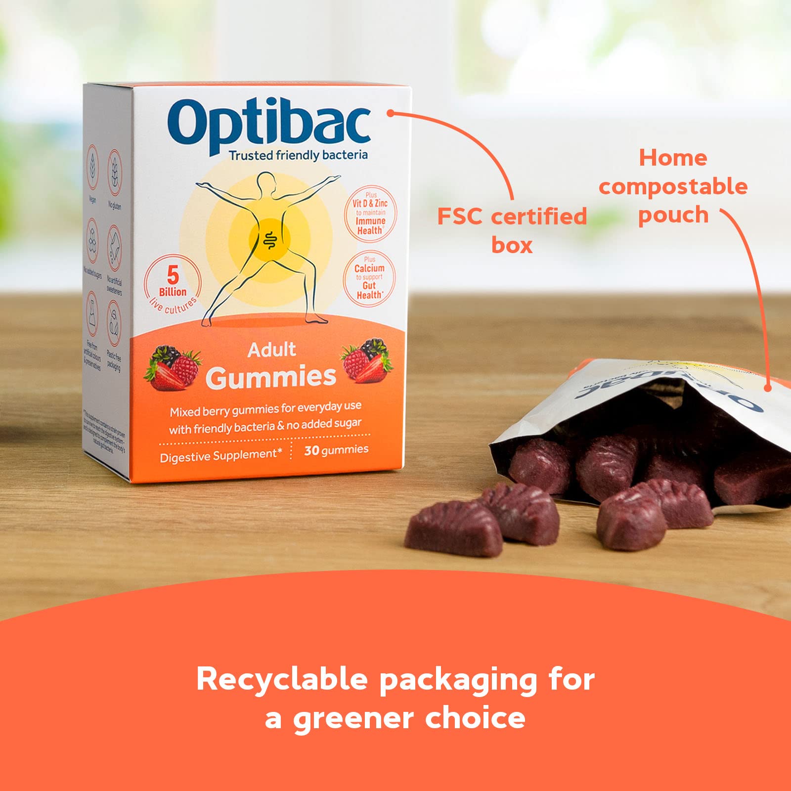 Optibac Probiotics Adult Gummies - Vegan Digestive Probiotic Supplement with Vitamin D, Zinc & Calcium for Immune Support & Gut Health - 5 Billion Bacterial Cultures - 30 Gummies
