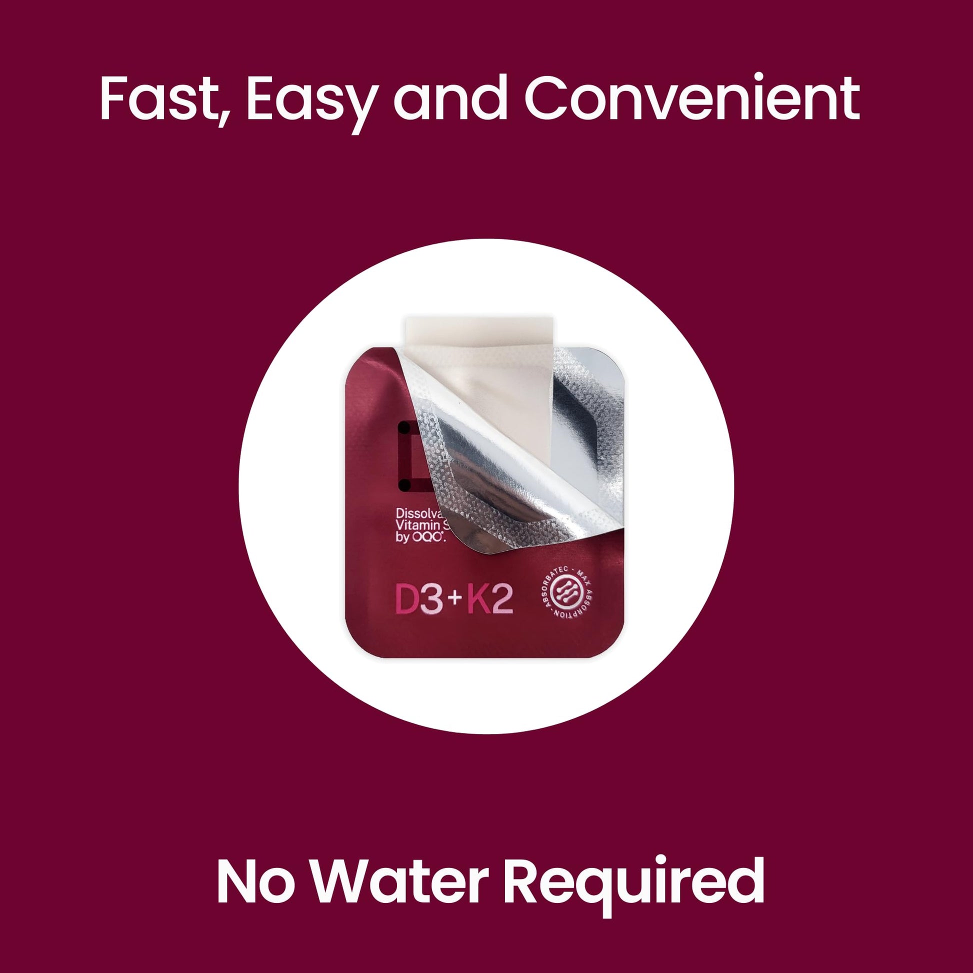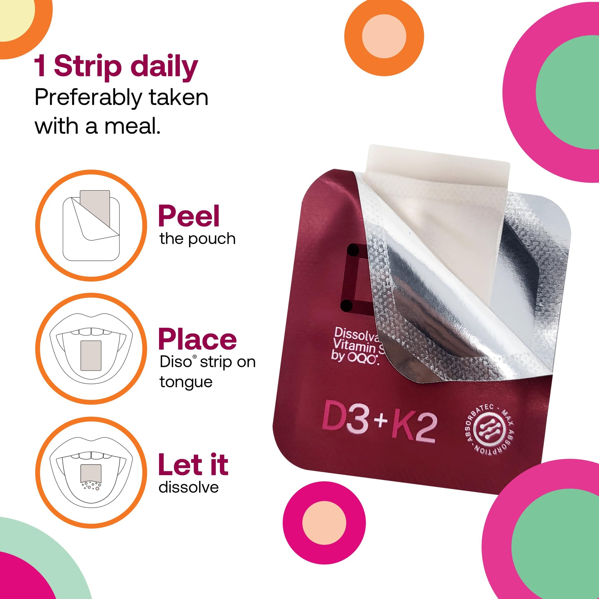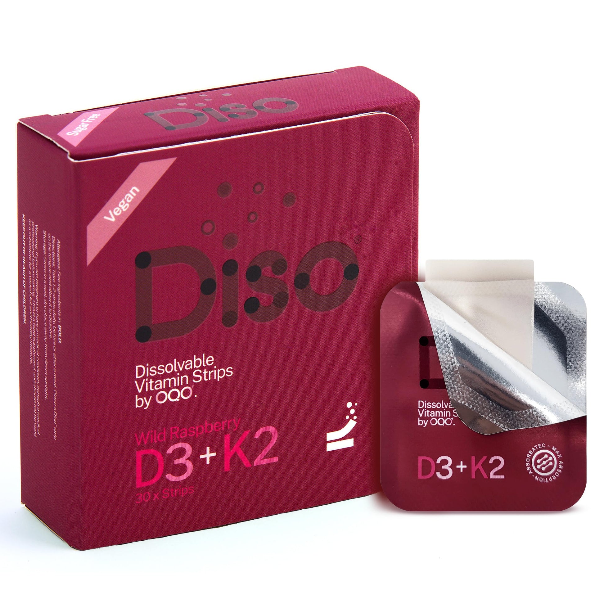 OQO Diso Vitamin D3 K2 - Box of 30 Oral Dissolvable Strips, Vitamin D3 (10mcg) and K2 (75mcg), High Strength Bone Health Supplement with Fast Absorption Calcium, Gluten Free (Raspberry)