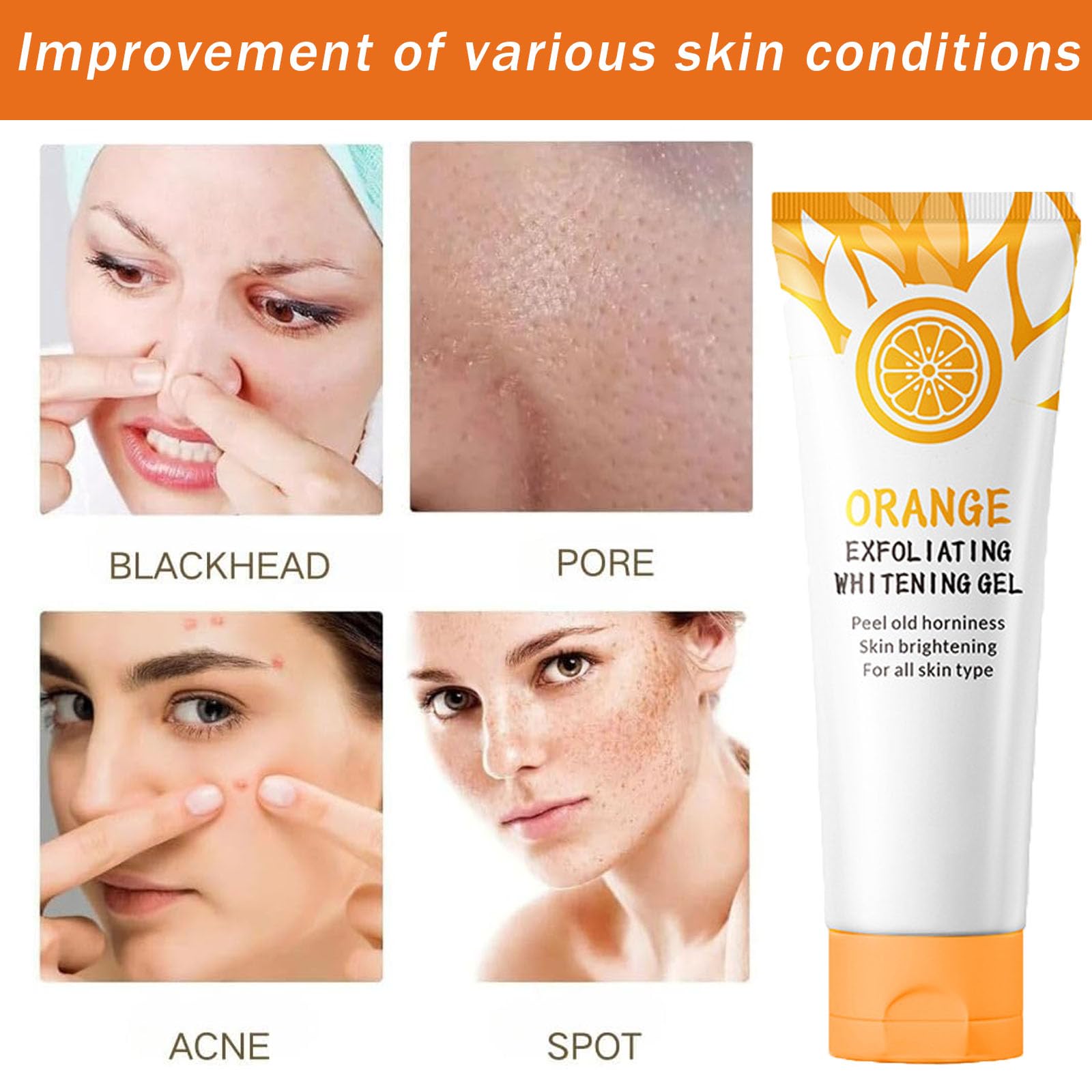 Product Description:This Orange Facial Exfoliating Gel effectively and gently removes dead skin cells and impurities to leave skin refreshed.