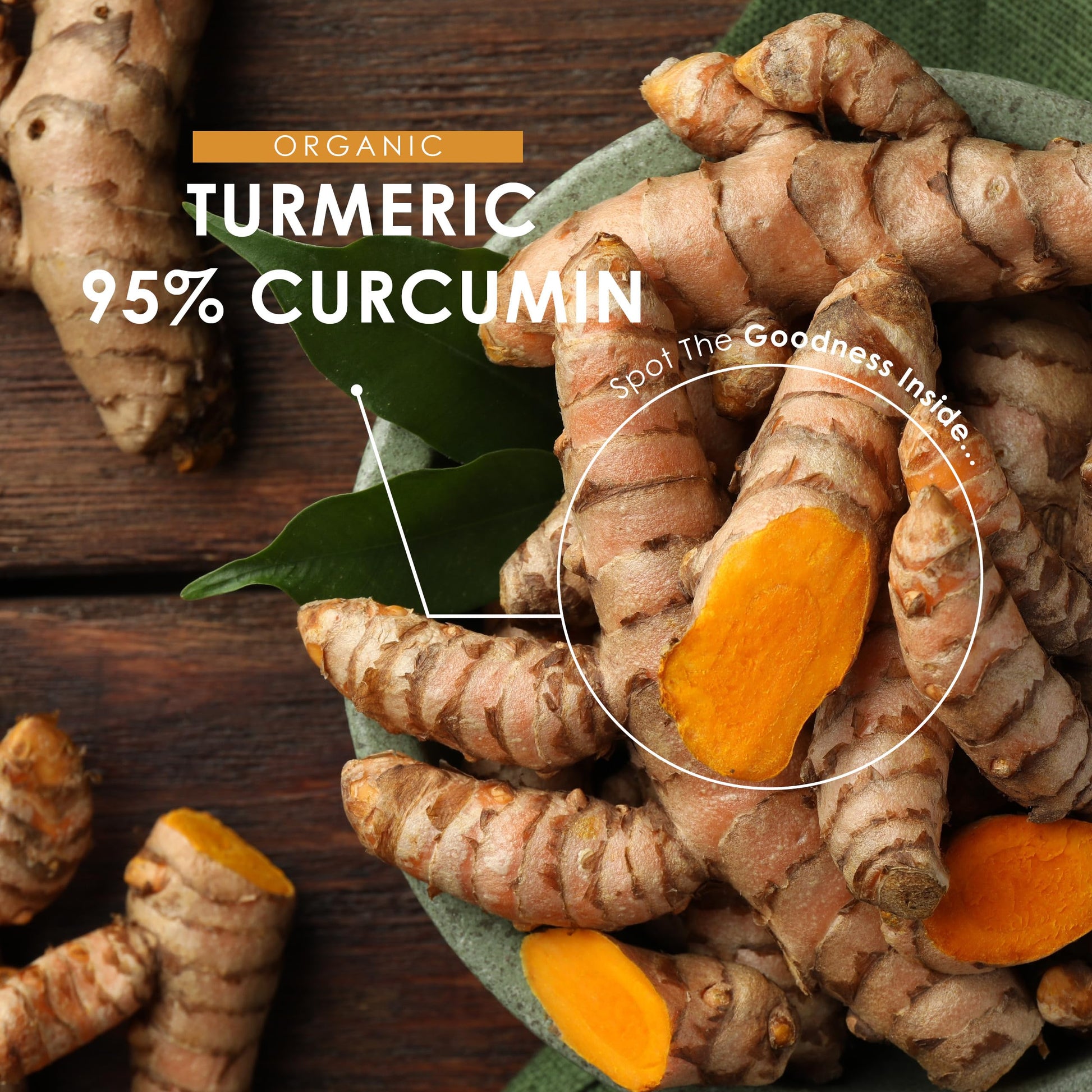 Organic 95% Curcumin Turmeric 15,000mg with Black Pepper – 475mg Curcuminoids – 90 Vegan Capsules – High Strength 95% Curcuminoids Supplement by Alpha01