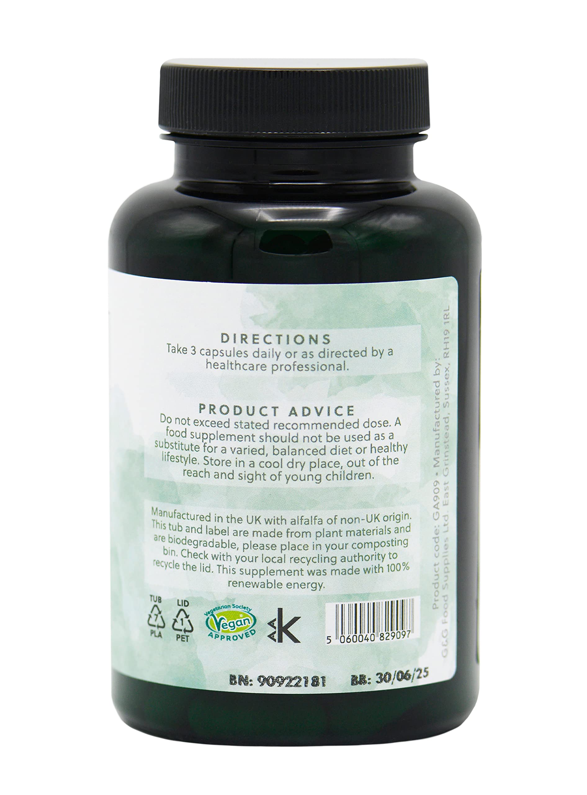 Organic Alfalfa Capsules | 500mg of Alfalfa per Capsule | 120 Vegan Capsules | Botanical Rich in Vitamins, Minerals and Other Nutrients | G&G Vitamins