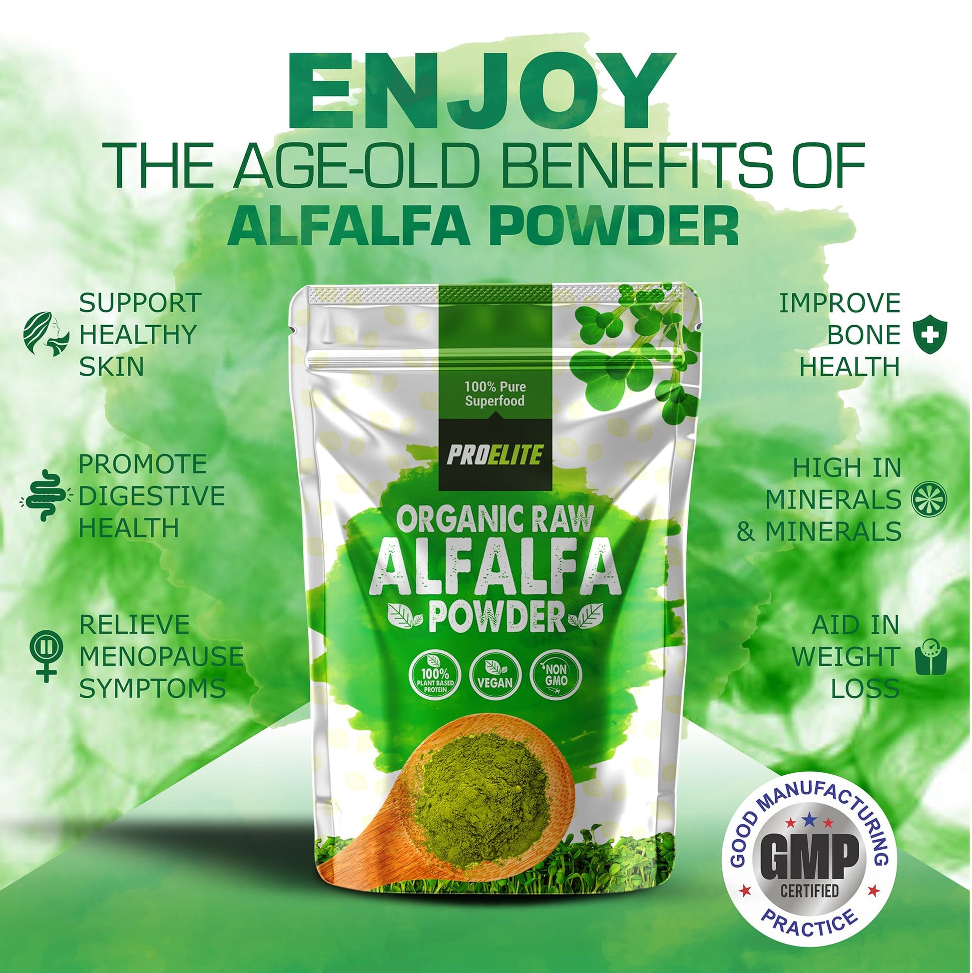 Organic Alfalfa Powder 500g Support Energy and Stress, Vegan Keto Green Superfood Supergreen Raw Natural Alfalfa Powder Juice Shots PROELITE