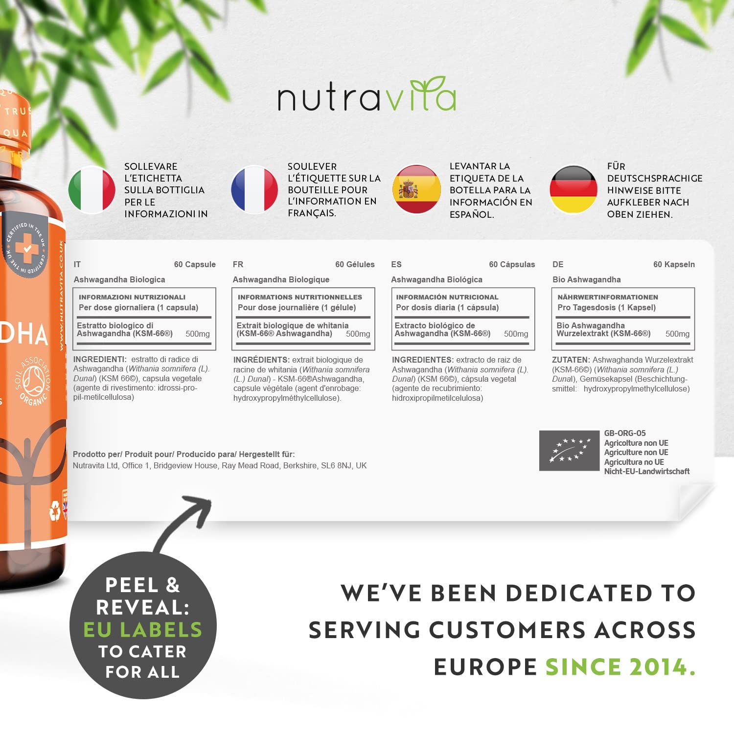 Organic Ashwagandha KSM-66® with 5% Withanolides - Vegan Friendly with The Highest Concentration Most Bioavailable Full-Spectrum Root Powder For Immune Support - Made in The UK by Nutravita