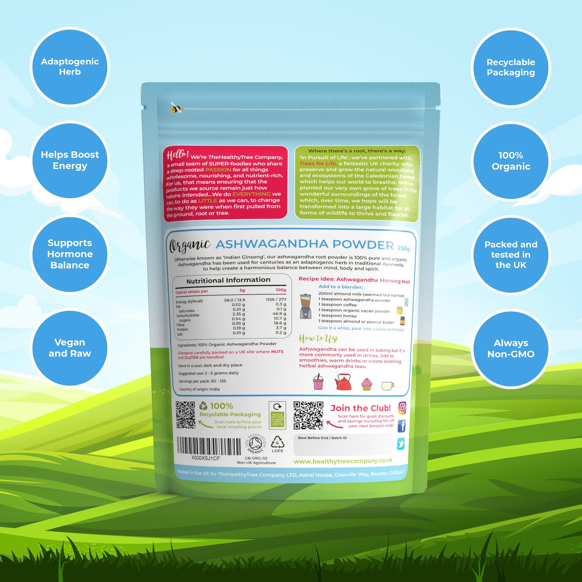 Organic Ashwagandha Powder - Raw Vegan Ashwagandha Root Powder by TheHealthyTree Company - Certified Organic Natural Stress Relief and Energy Support, Non-GMO & Gluten Free (250g)