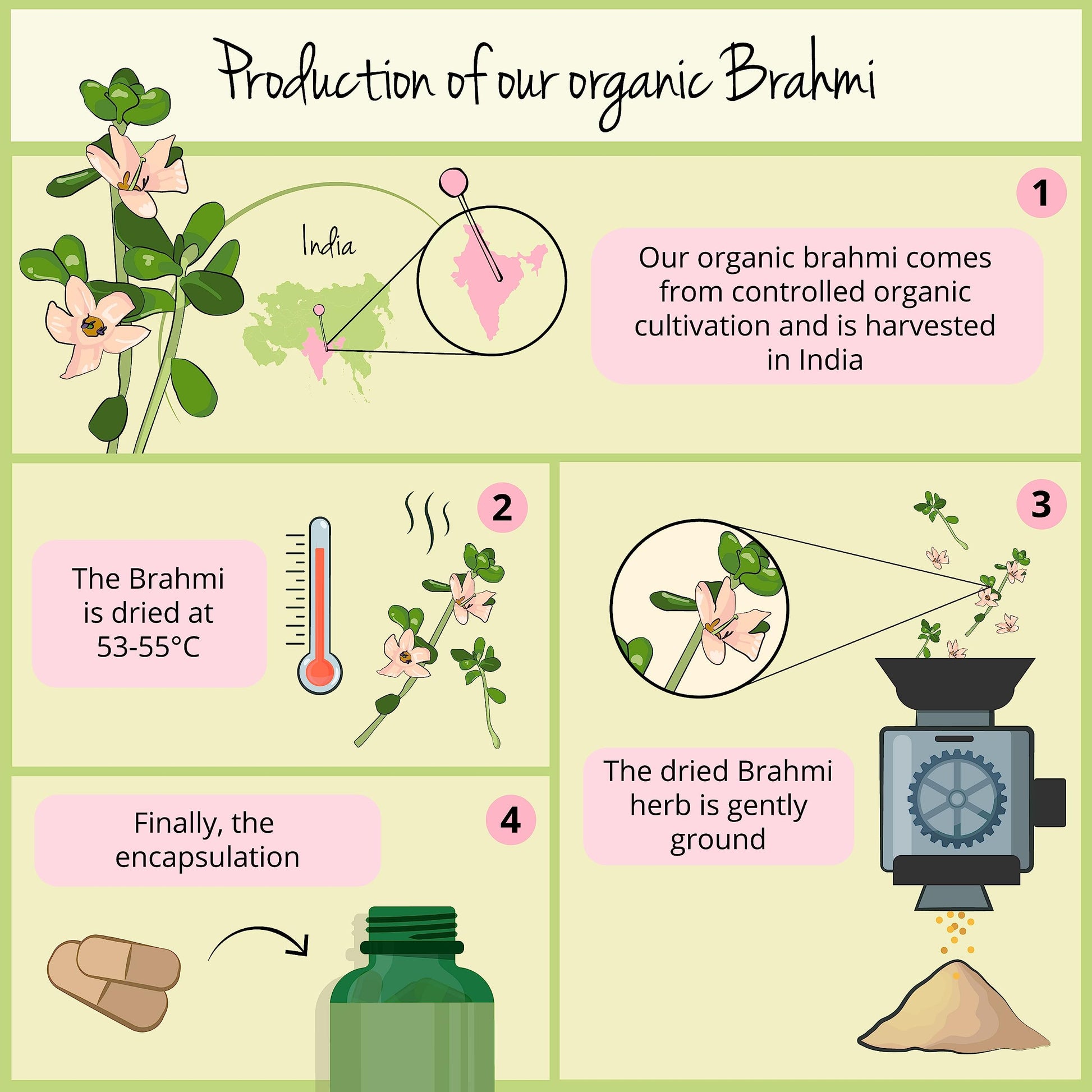 - ⭐ ORGANIC QUALITY FROM INDIA: Brahmi or Bacopa monnieri is a popular plant in traditional Ayurvedic medicine. It has been used for centuries for a variety of purposes. Instead of a Brahmi extract, our Brahmi tablets contain Bacopa monnieri powder from controlled organic cultivation in India, where Ayurvedic medicine originates from. This ensures a high-quality product that has not been treated with solvents and retains almost the entire nutrient profile of the plant.