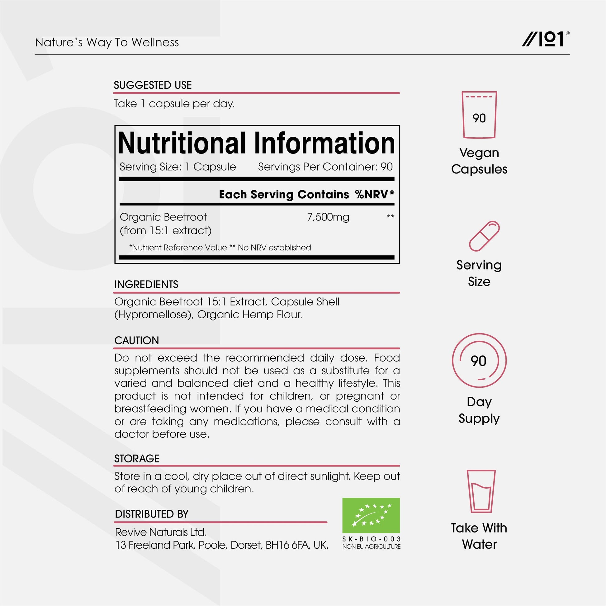 Known for its sweet and earthy flavour, Beetroot is a diverse vegetable that can be eaten raw, cooked, pickled or blended into smoothies. Each capsule contains the botanical equivalent of 7,500mg of organic Beetroot for maximum purity, potency and performance.More Info