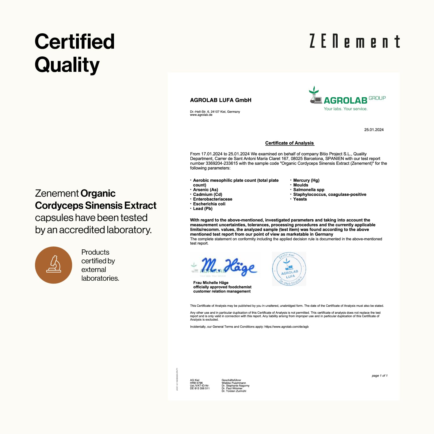 Adaptogenic mushrooms such as Cordyceps are known for their high content of polysaccharides - their most important bioactive ingredients. Our Cordyceps extract organic cs4 is derived from pure Cordyceps Sinensis mycelium, which is particularly rich in these biologically active substances. Unlike other Cordyceps supplements, our product is Organic.More Info