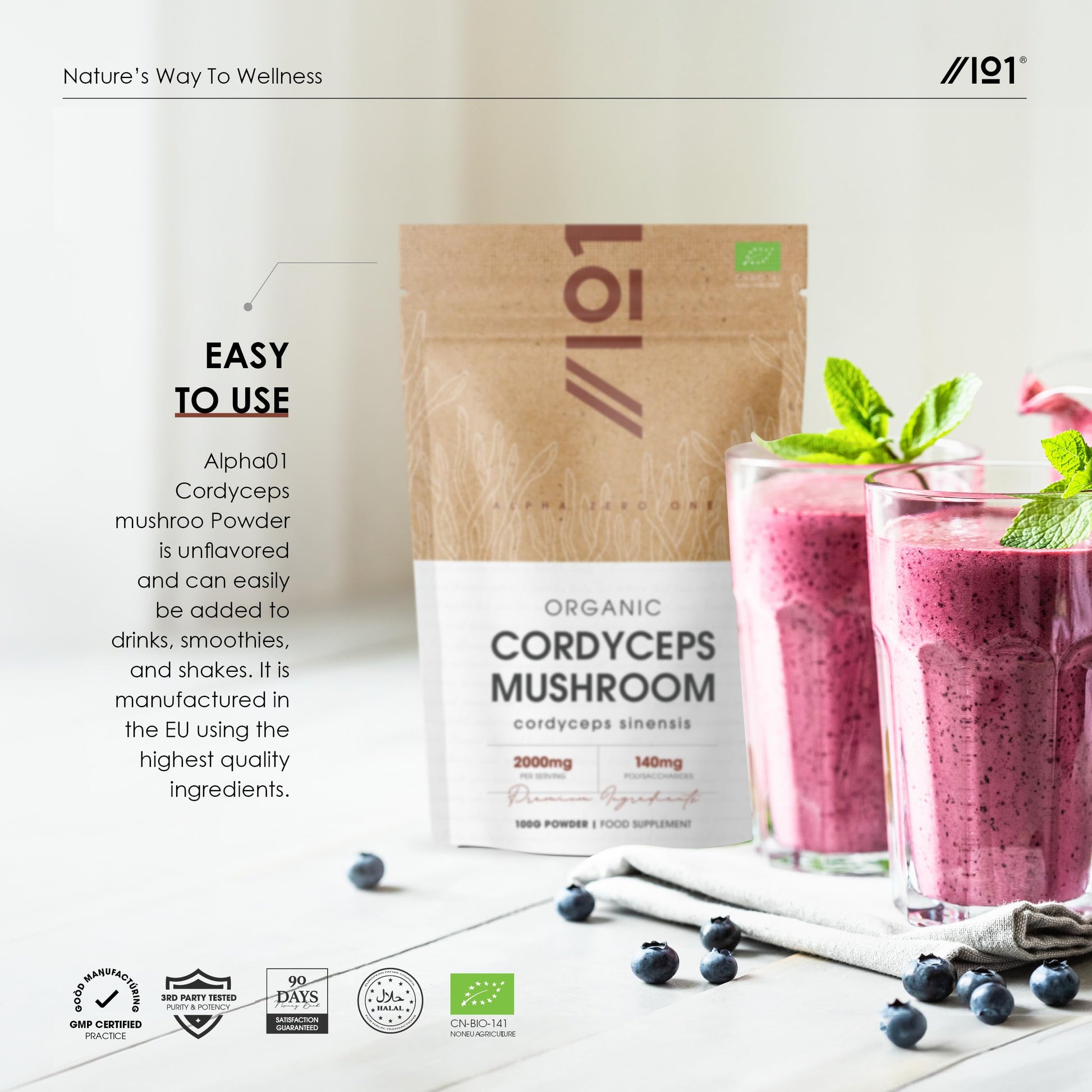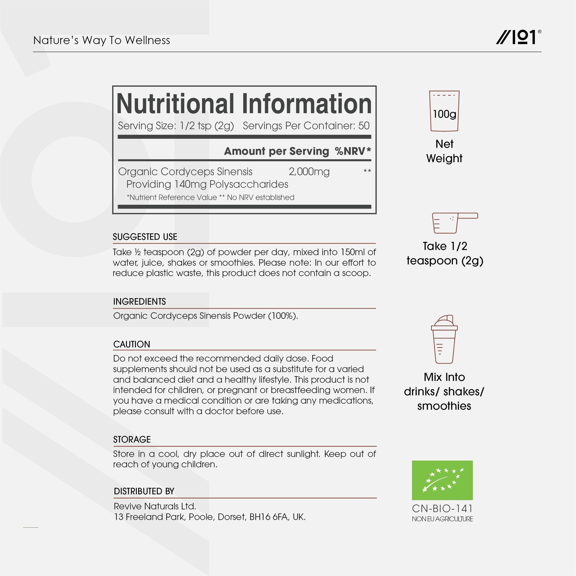 Organic Cordyceps Sinensis Powder 100g – Pure Cordycipitaceae Mushroom – Resealable and Recyclable Pouch – by Alpha01