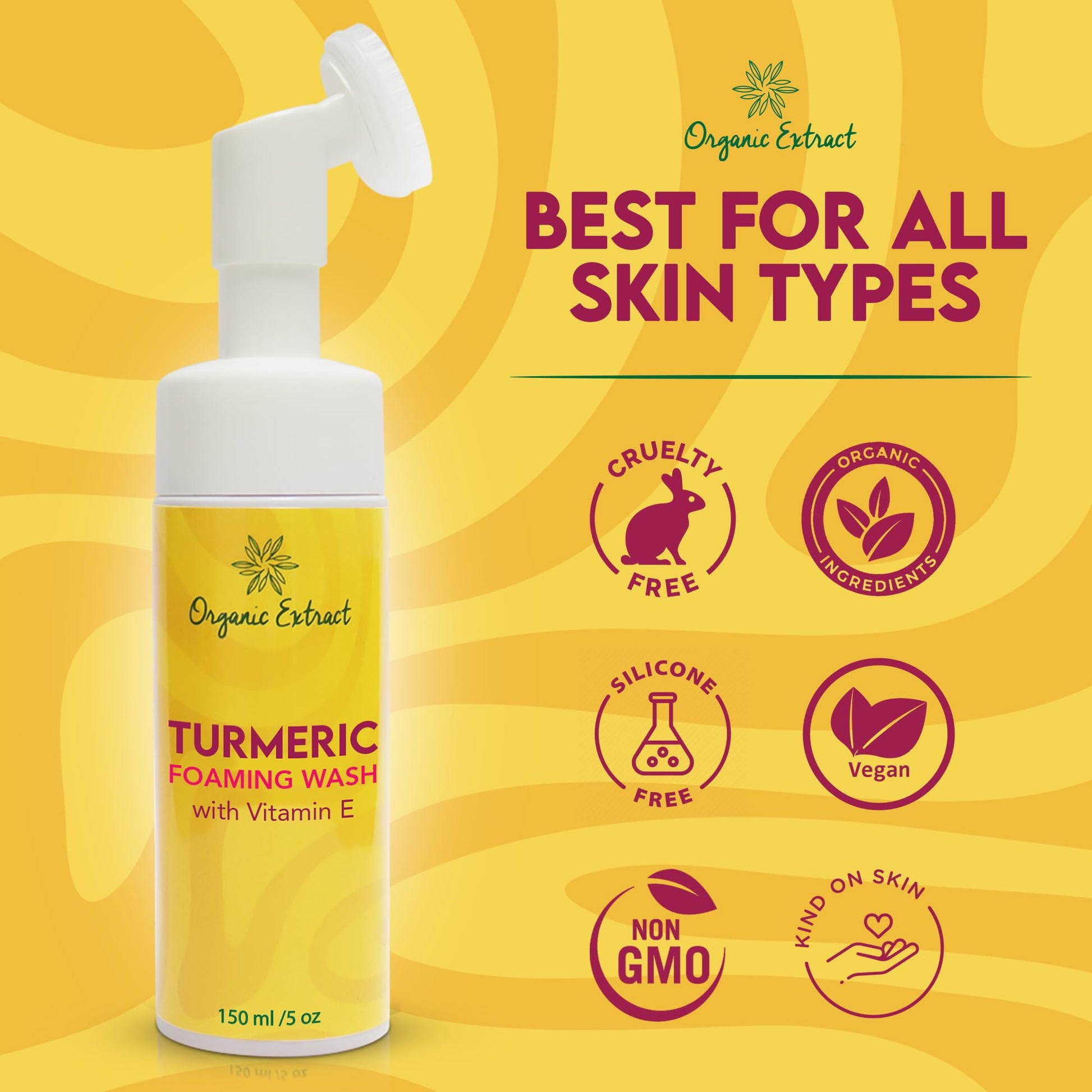 - TURMERIC'S CHARM - The Turmeric Extract in our foaming cleanser is a natural powerhouse. It helps soothe uneven skin and reduce blemishes, giving you a smoother, calmer appearance. Turmeric also helps to reduce fine lines, wrinkles, and acne, making this exfoliating Foaming wash a clarifying and rejuvenating elixir.
