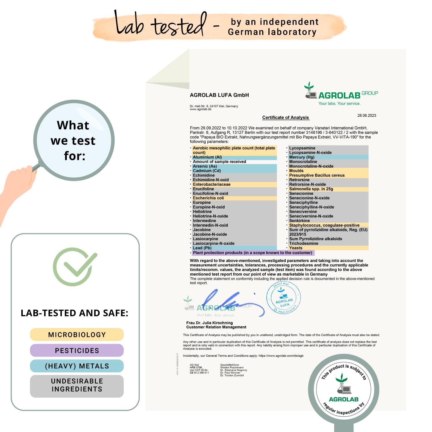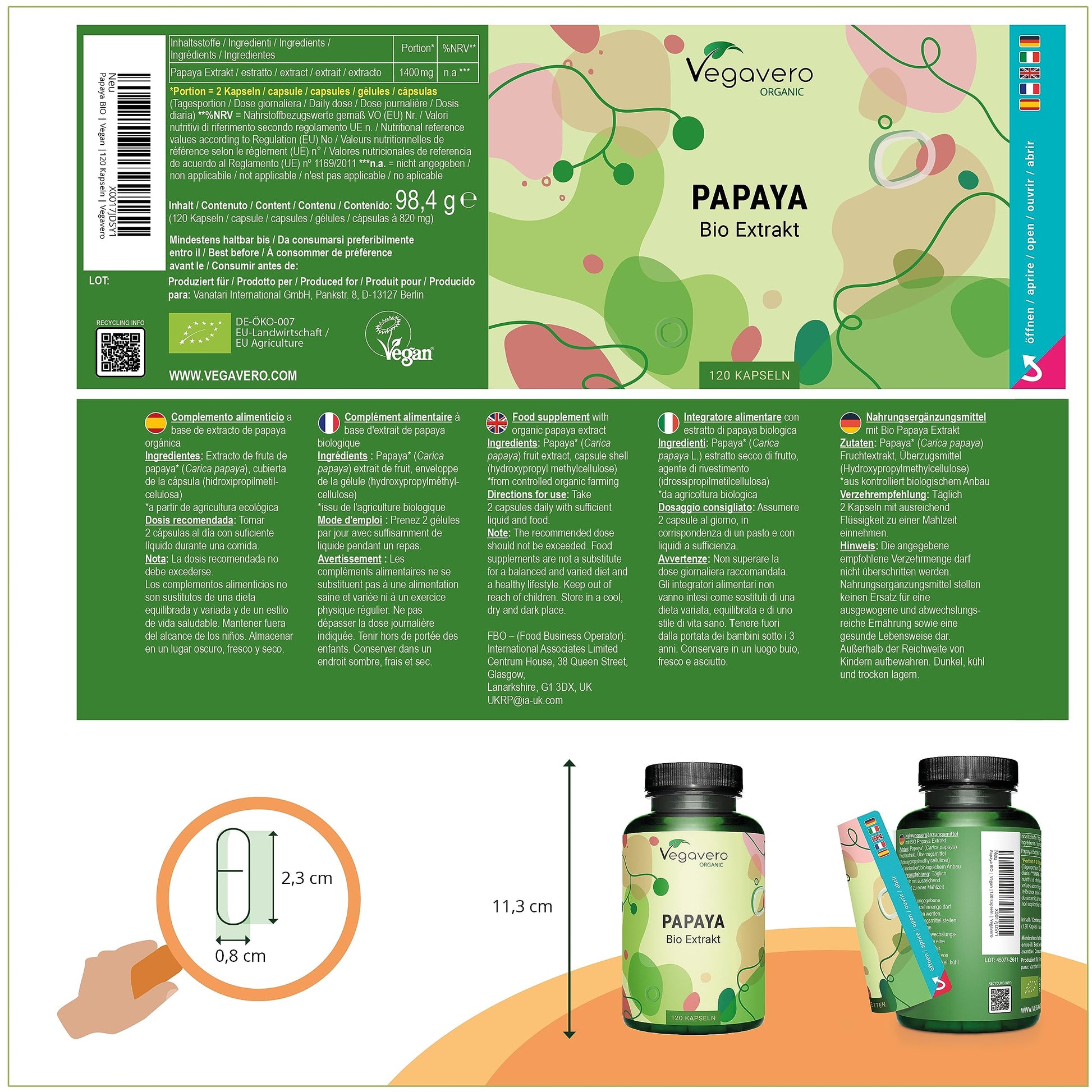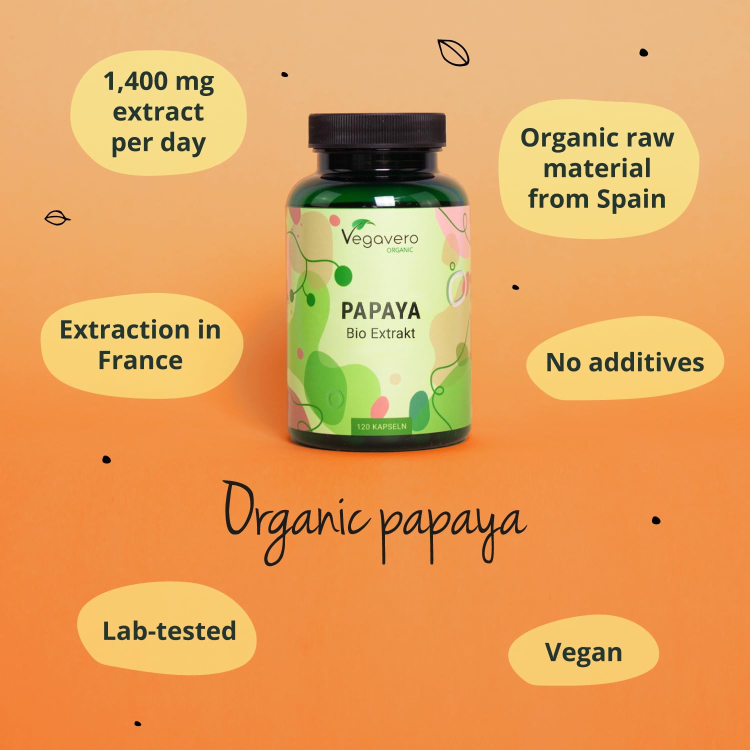 - ⭐ HIGHLY DOSED: The organically grown papaya fruits are carefully processed and gently spray-dried in France to obtain a high-quality extract that retains its natural nutrient profile. Our product is highly dosed: Each capsule provides 700 mg of organic papaya extract.