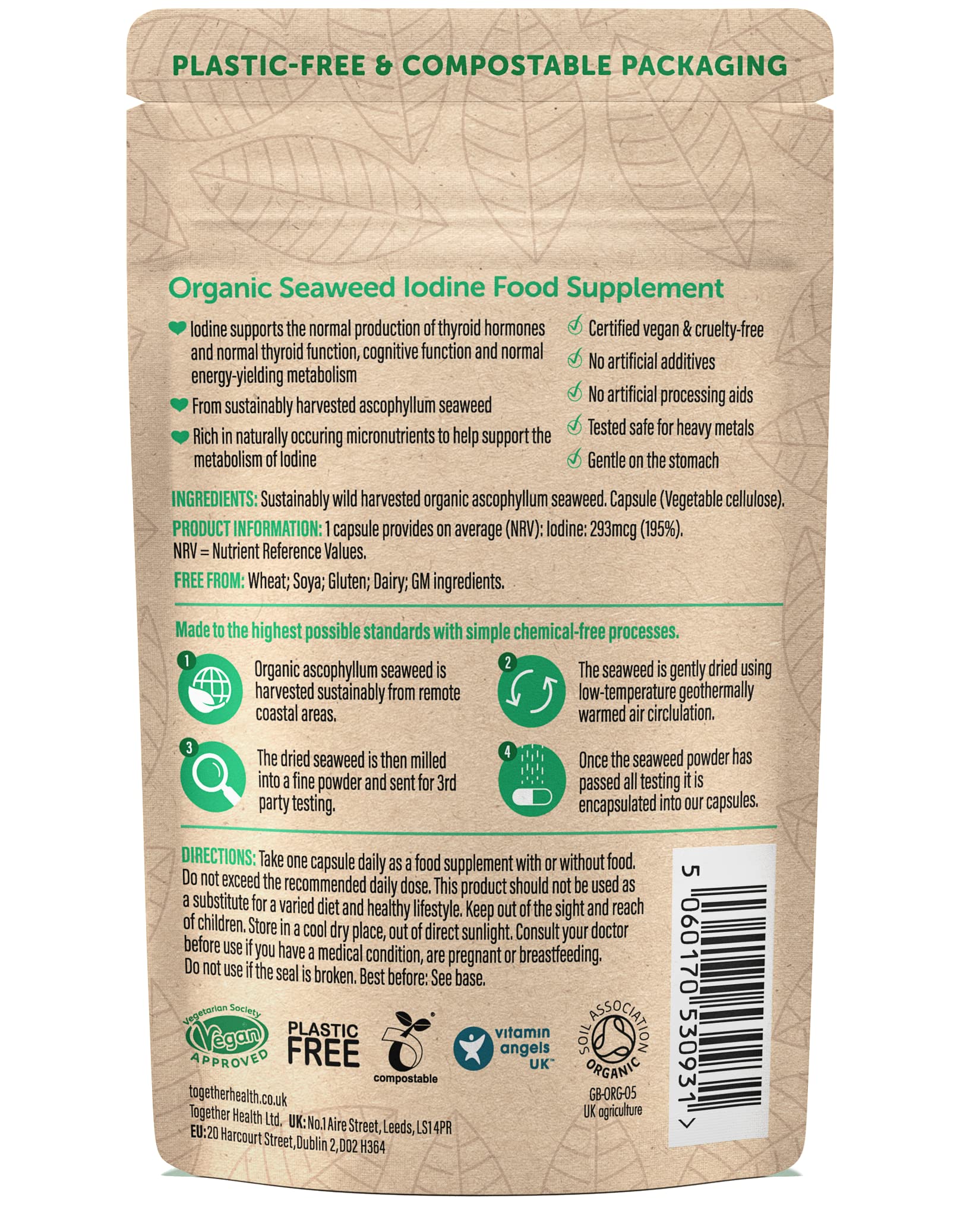 Organic Seaweed Iodine Supplement – Together Health – from Organic Seaweed – Natural Source of Iodine – Vegan Friendly – Made in The UK – Pack of 3-90 Vegecaps