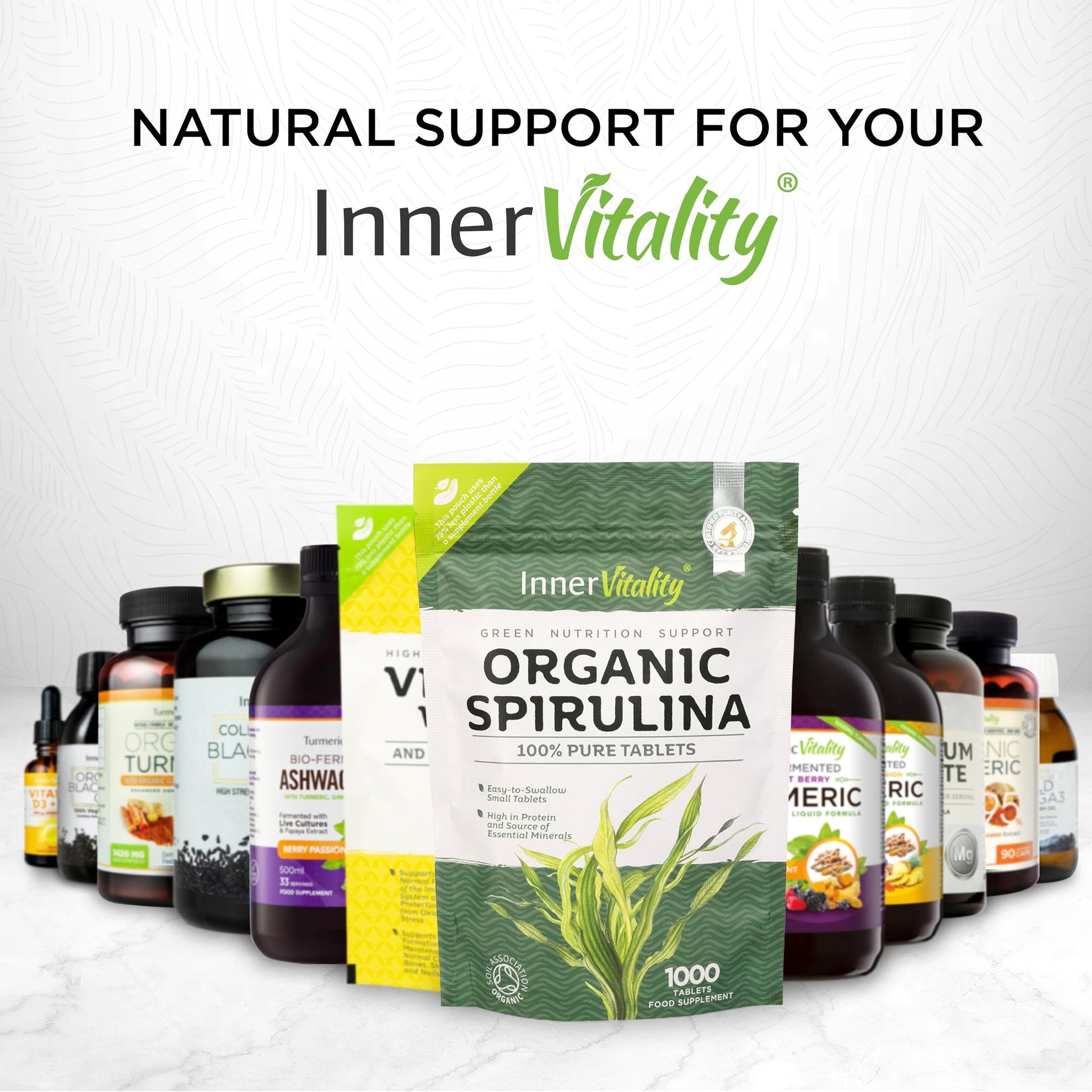 Organic Spirulina Tablets 1000 Easy to Swallow Tablets - 100% Pure Certified Organic Tablets Rich in Essential Vitamins & Minerals by Inner Vitality