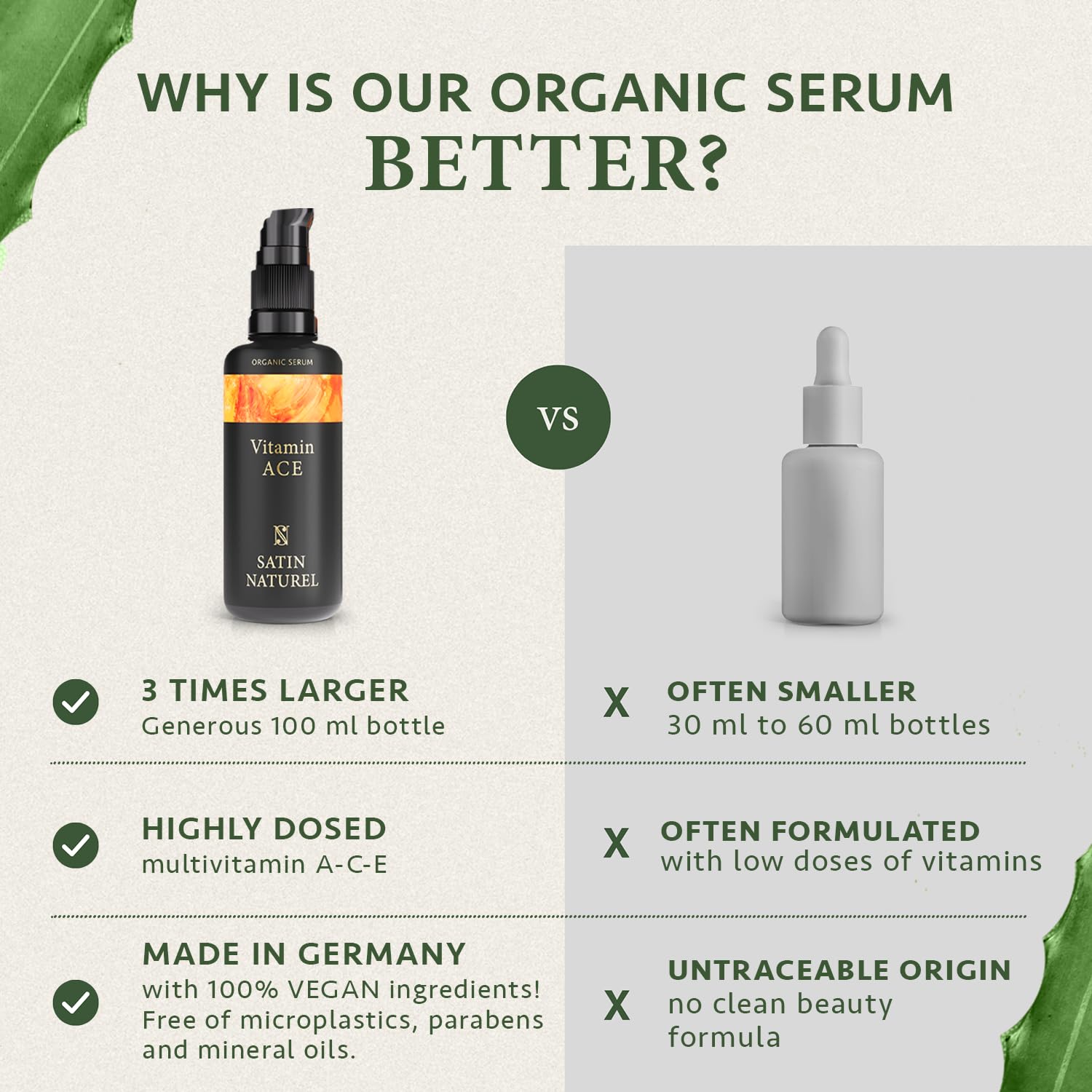 Organic Vitamin C Serum for Face with Vitamin E, A & Hyaluronic Acid Serum for Face 100 ml, Brightening Serum & Anti Aging Serum for Face - Aloe Vera Based Vegan Skin Care Products by Satin Naturel