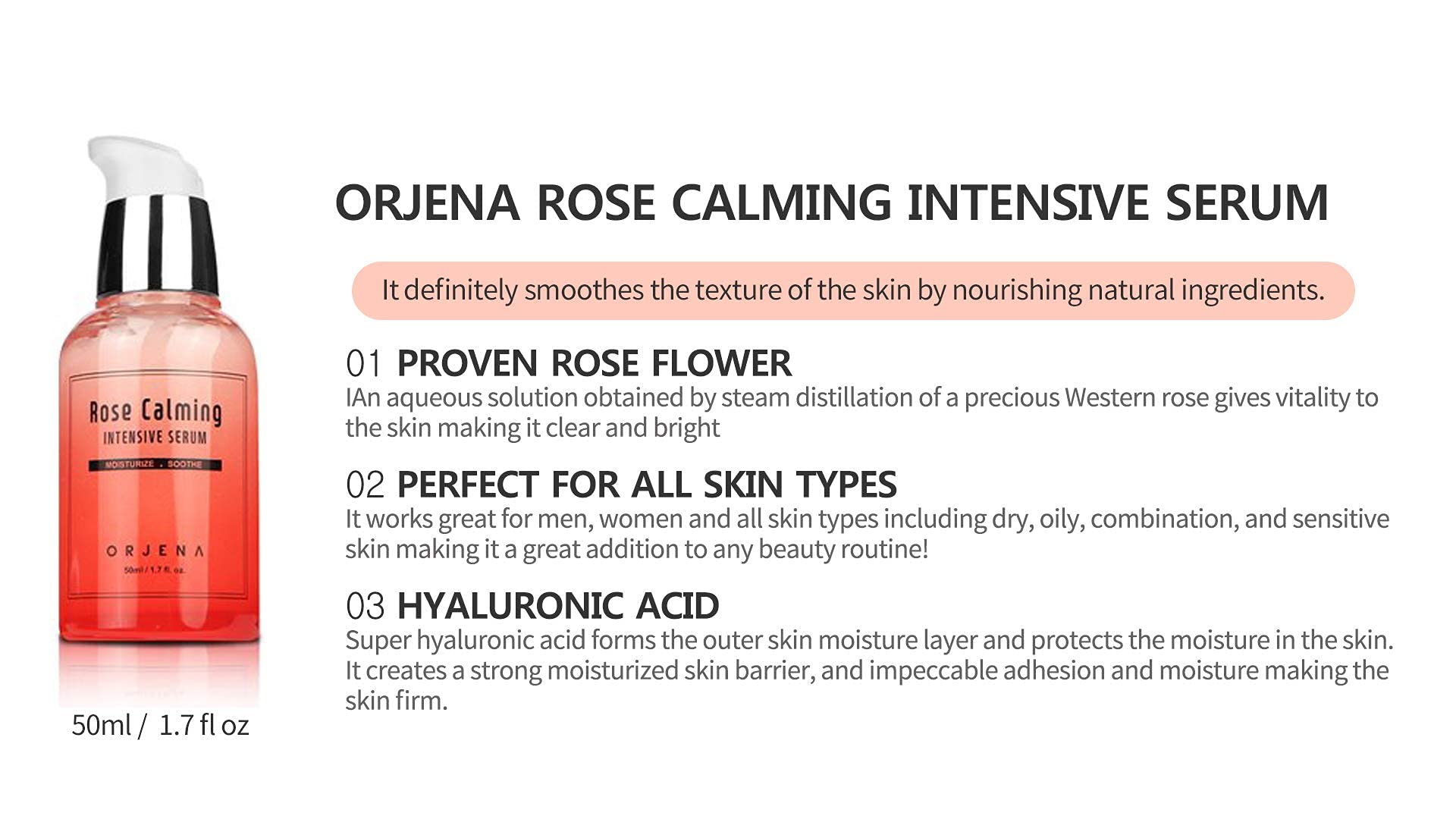 Orjena Rose Calming Intensive Serum - Moisturizing, Soothing, Calming - For All Skin Types, 50ml Net Wt