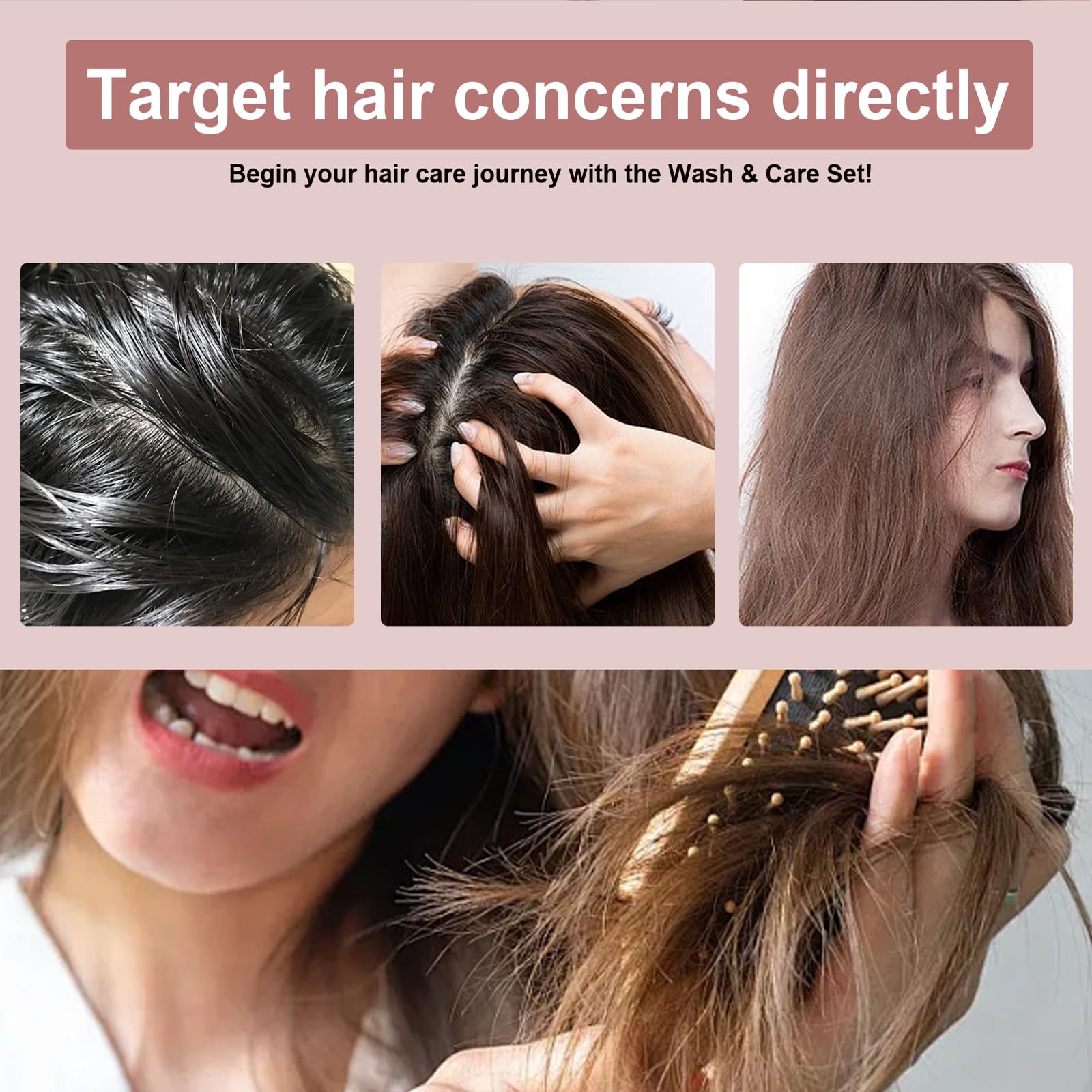 💕 STEP 2: Take an appropriate amount of shampoo & conditioner, apply it evenly on the hair, and gently massage the scalp.
