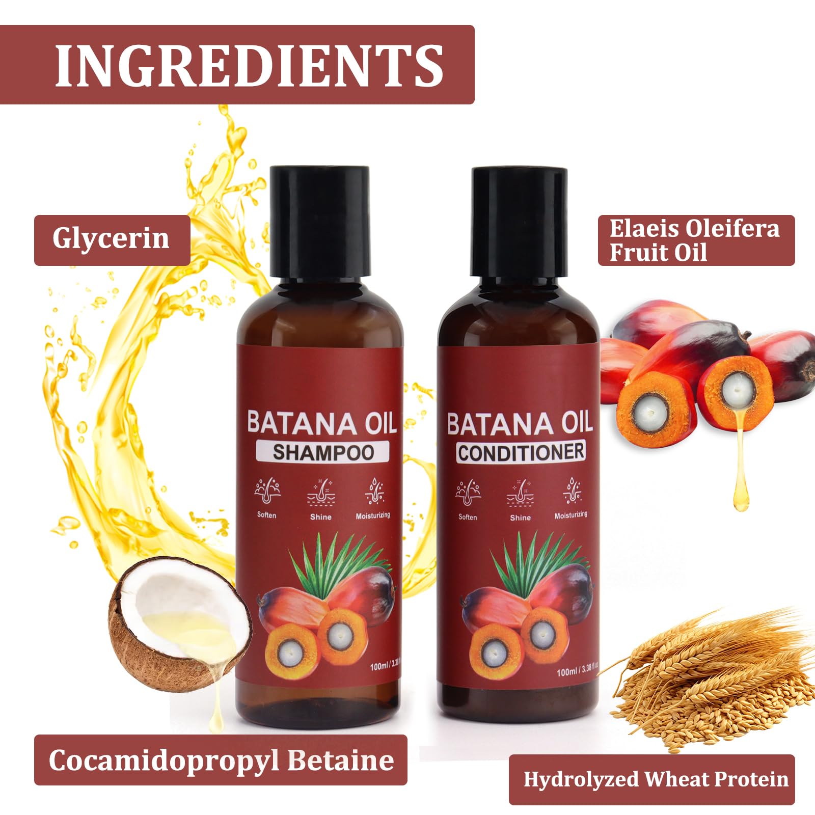 Orknglowy 2PCS Batana Oil Hair Care Set - Batana Shampoo and Conditioner, Bantana Natural Hair Growth Oil with Olive oil, Reduces Hair Loss, Promotes Hair Regrowth, Moisturizing, Nourishing, for Men & Women