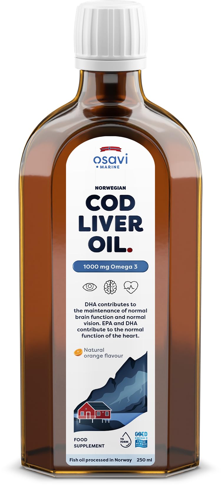 Osavi Norwegian Cod Liver Oil, 1000mg Omega 3 (Orange) - 250 ml.