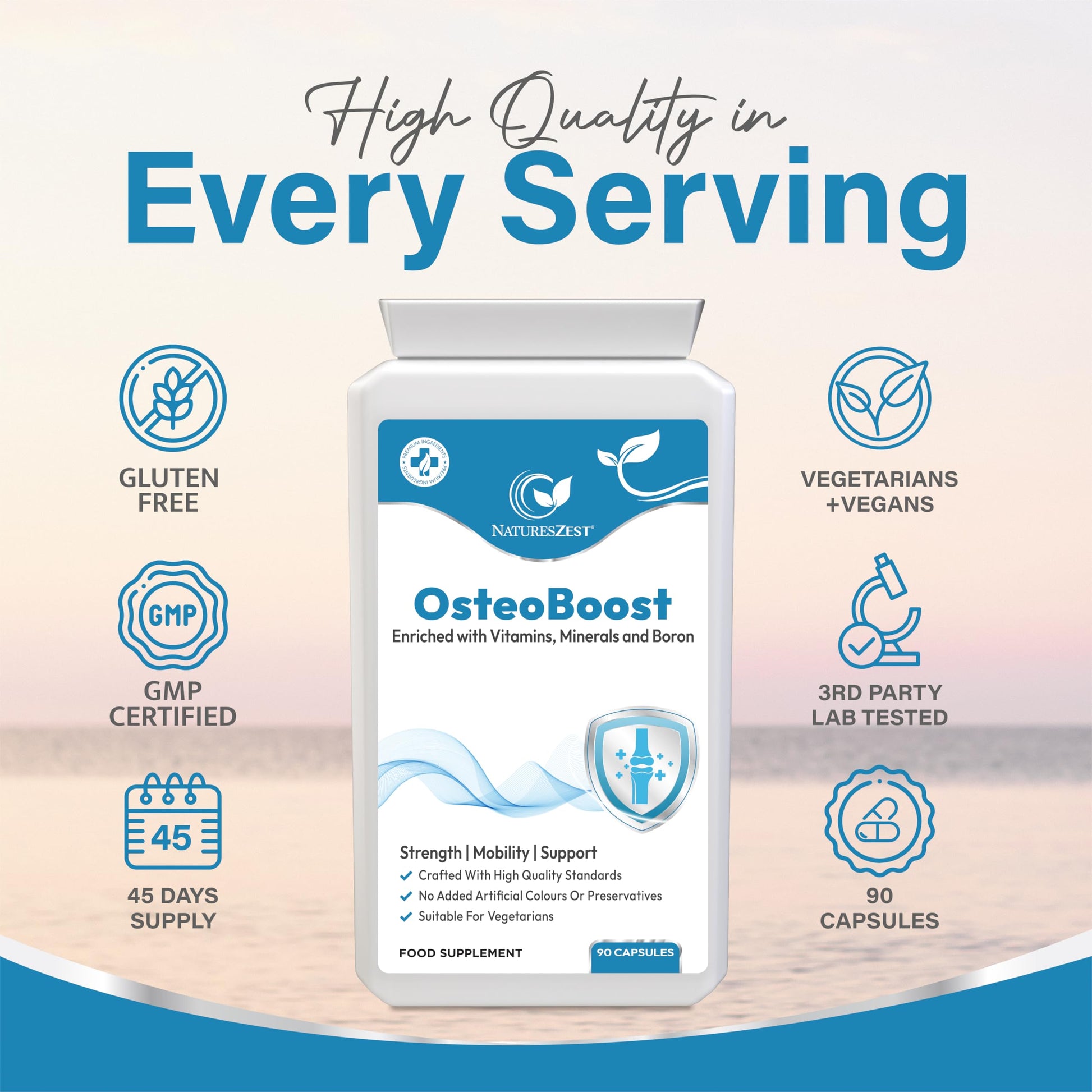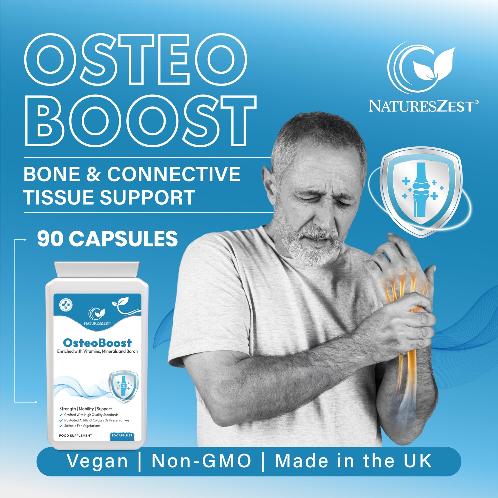Ideal for seniors, active adults, women, and anyone concerned about bone strength, OsteoBoost helps support mobility, and maintain long-term skeletal health.