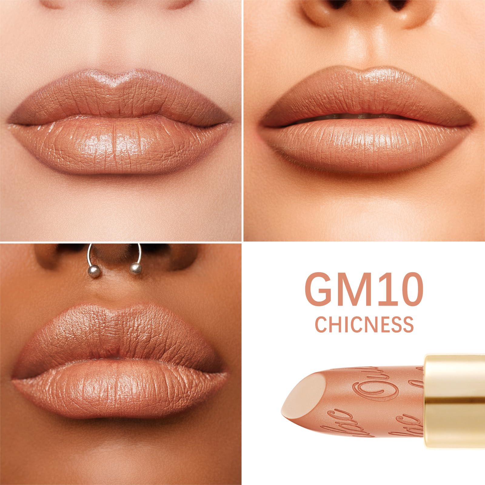 Oulac OULAC Glow Metallic Shine Lipstick, Nude High Impact Lipcolor, Lightweight Soft and Ultra Hydrating, Long Lasting, Vegan & Cruelty-Free, Full Coverage Lip Color 4.3 g/0.15 GM10 Chicness