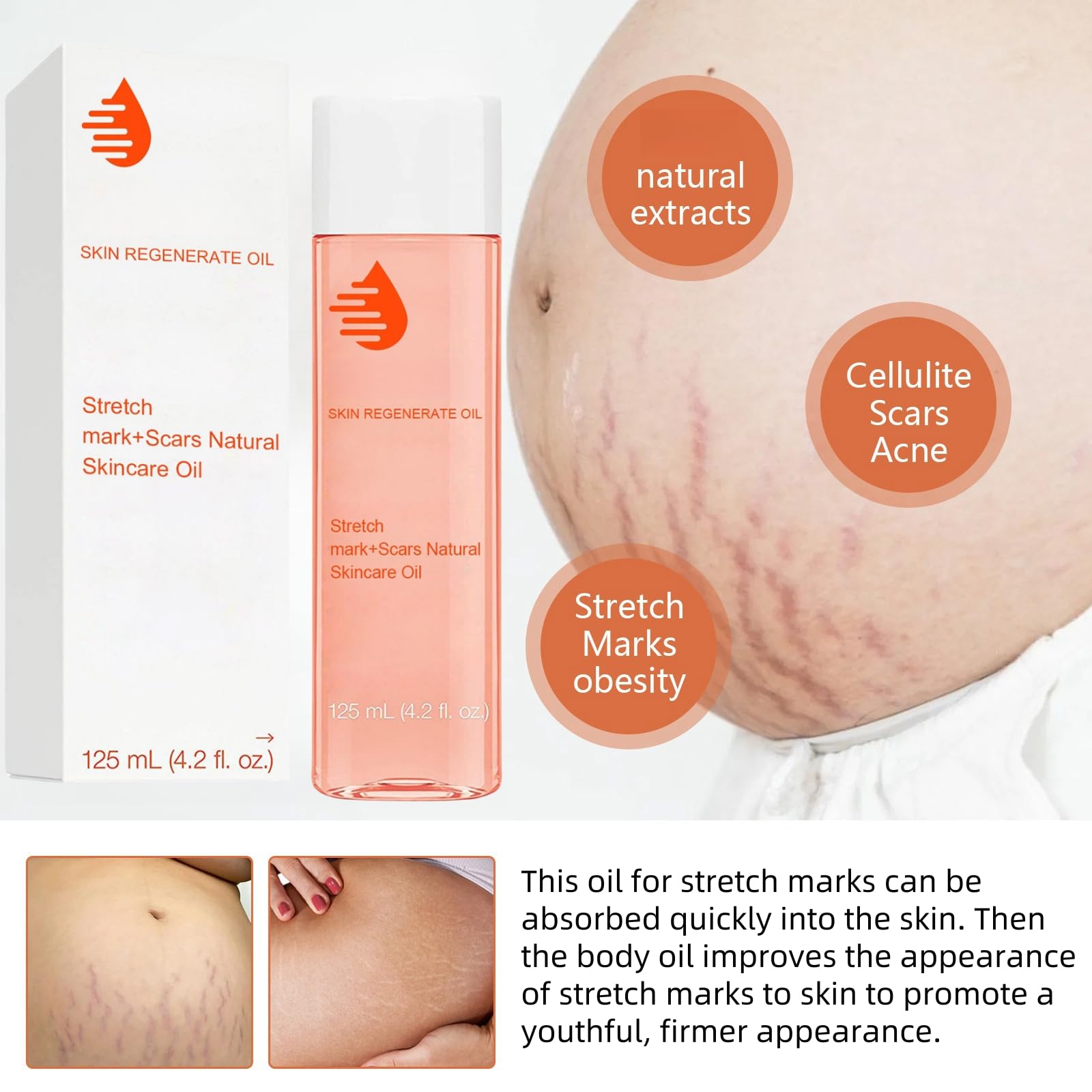 Oumun 125ml Optimal Oil,Stretch Mark & Scar Treatment Skincare Oil,Body Oil Skin Care,Skin Regenerate Oil,Collagen Boost Firming & Lifting Skincare Oil,Body Oil for Women,Stretch Marks Removal,Facial Oil