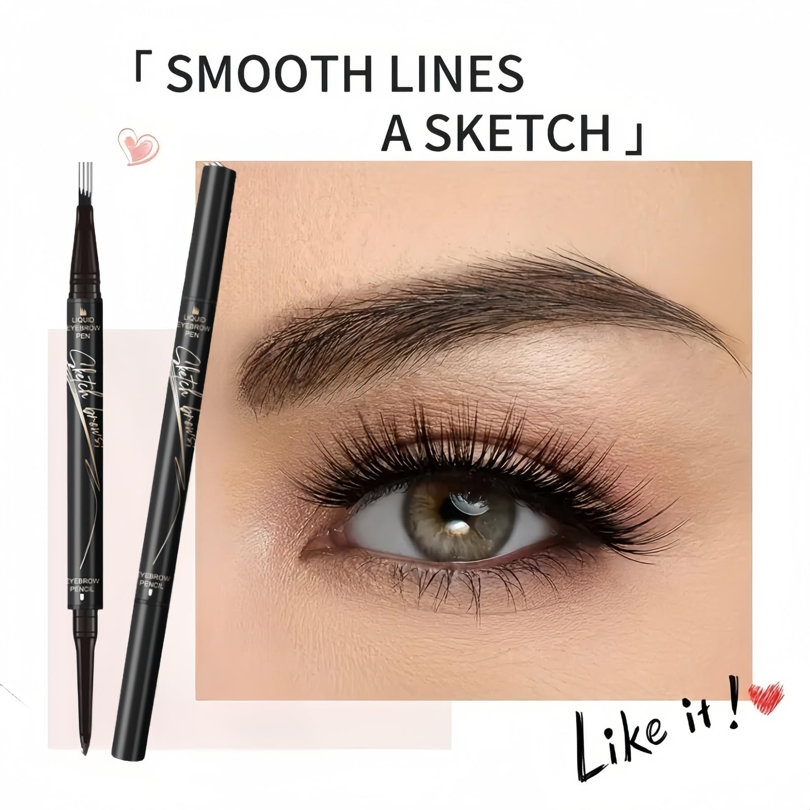 Oumun Eyebrow Pen,2-in-1 Eye Brow Pencils for Women with 4-Fork-Tip & Precise Brush-Tip,Waterproof Eyebrow Pencil Contouring Pen,Dual Ended Eyebrow Pen,Black Eyebrow Tint,Brow Microfilling Pen,Brow Tint Pen