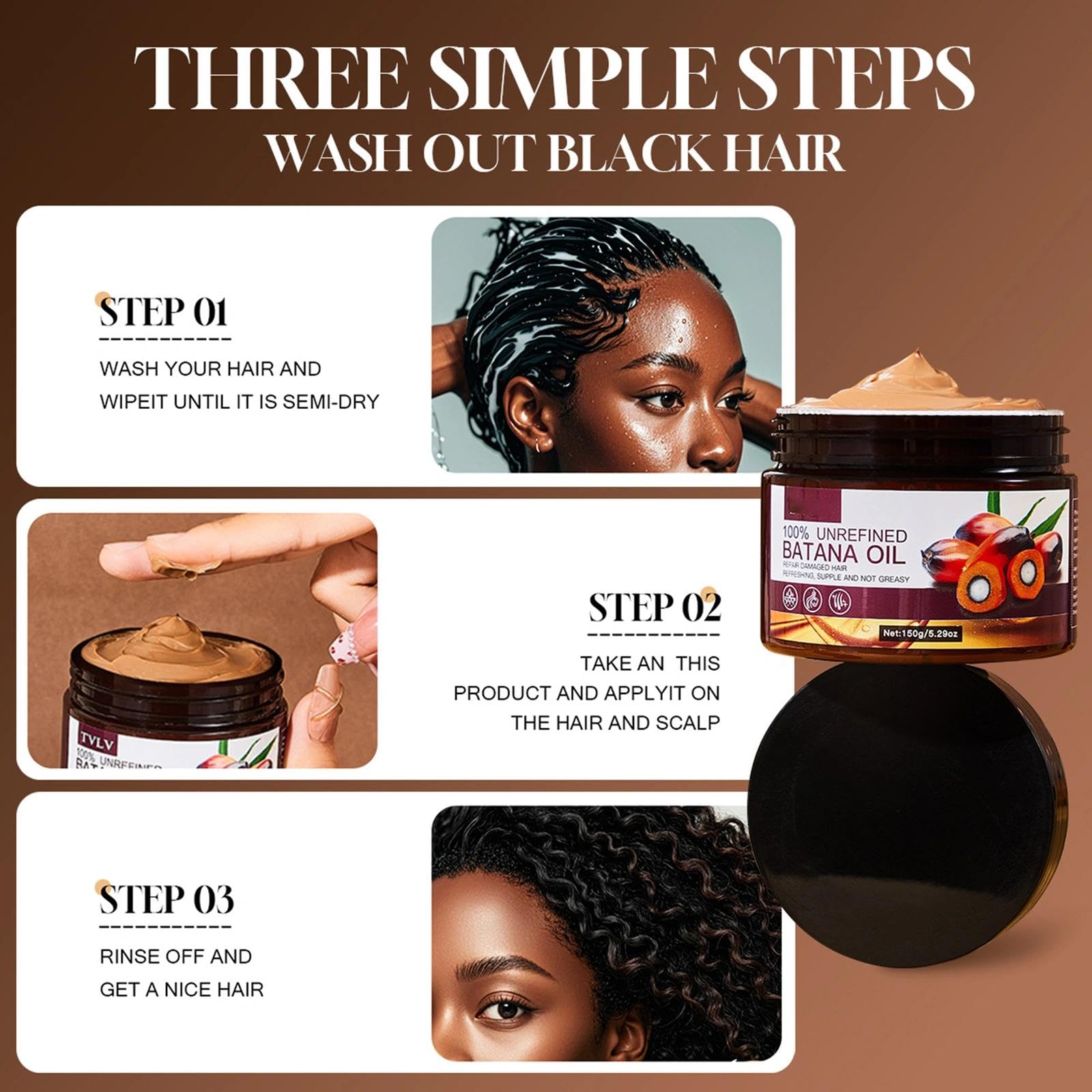 Organic Batana Oil from Honduras for Hair Growth - Reduce Hair Loss, Split Ends, and Enhance Thickness - Ideal for Men and Women - 150g