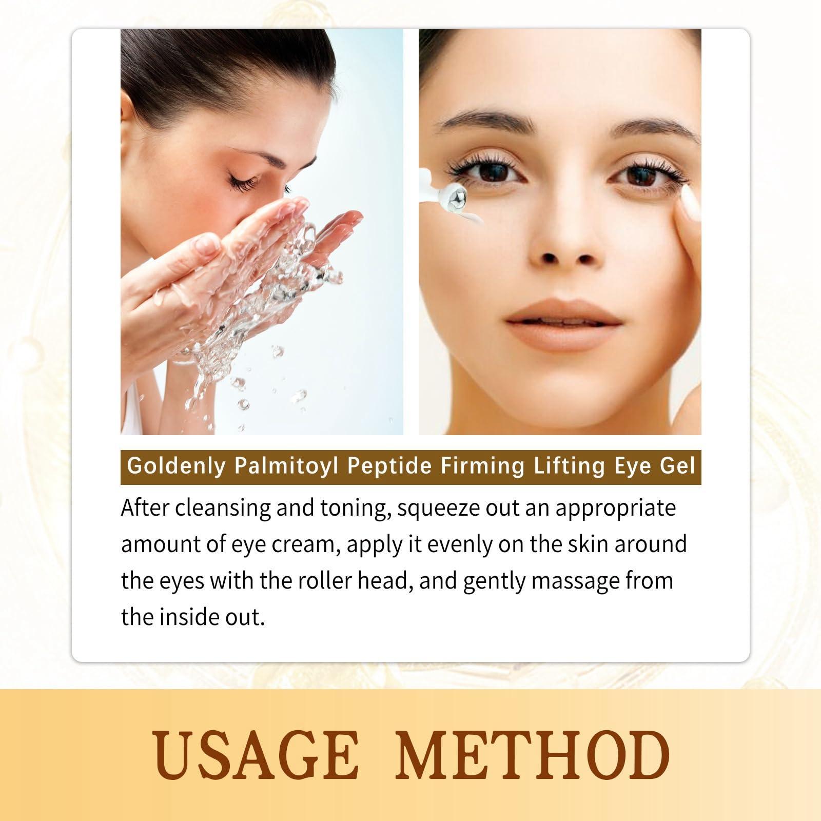 4.Use our eye cream for puffy eyes every morning and evening,continuously massage to promote absorption and brighten the skin around the eyes.