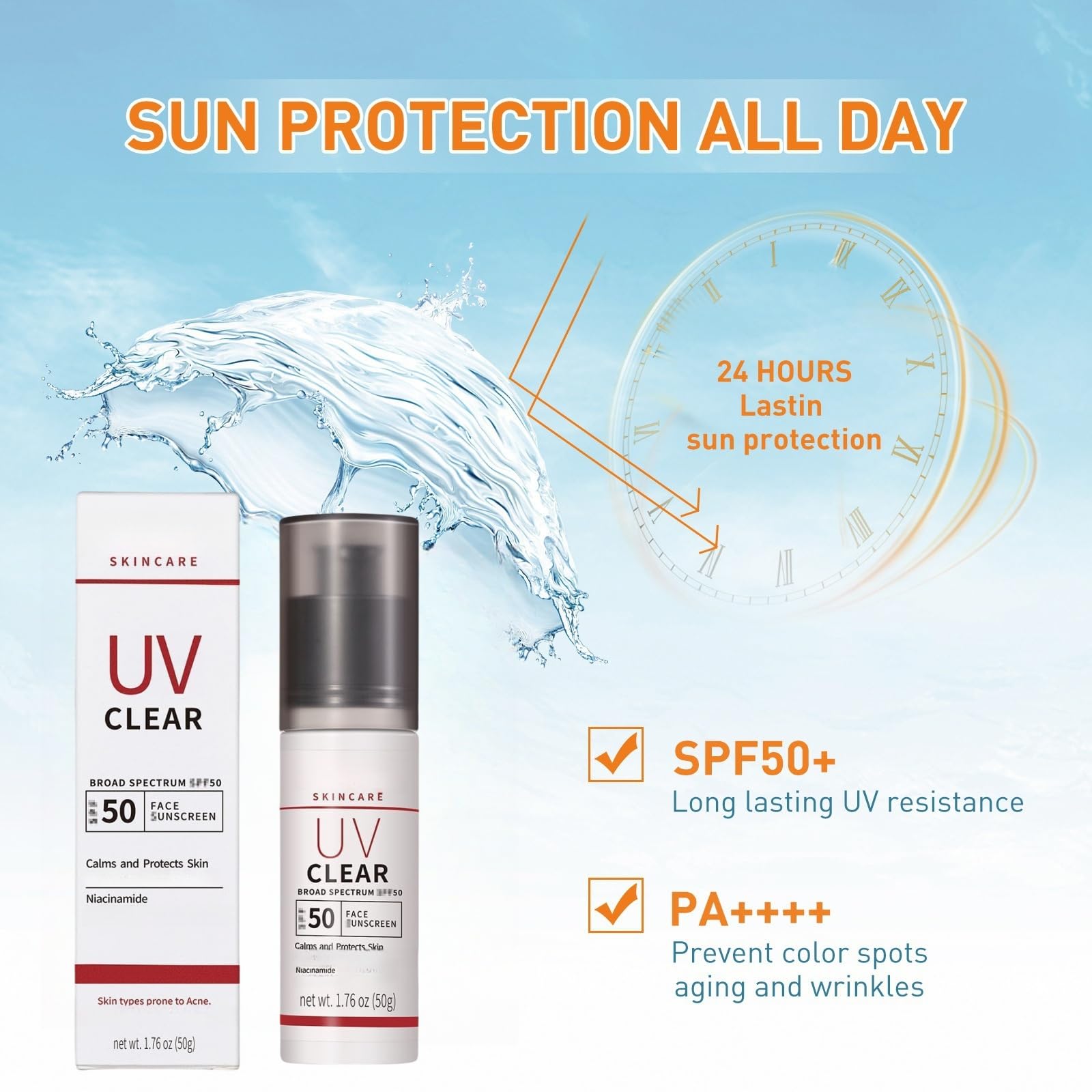 Features:1.Multi-Action Benefits: The suncream factor 50 face combats dryness and helps prevent premature aging caused by sun damage.