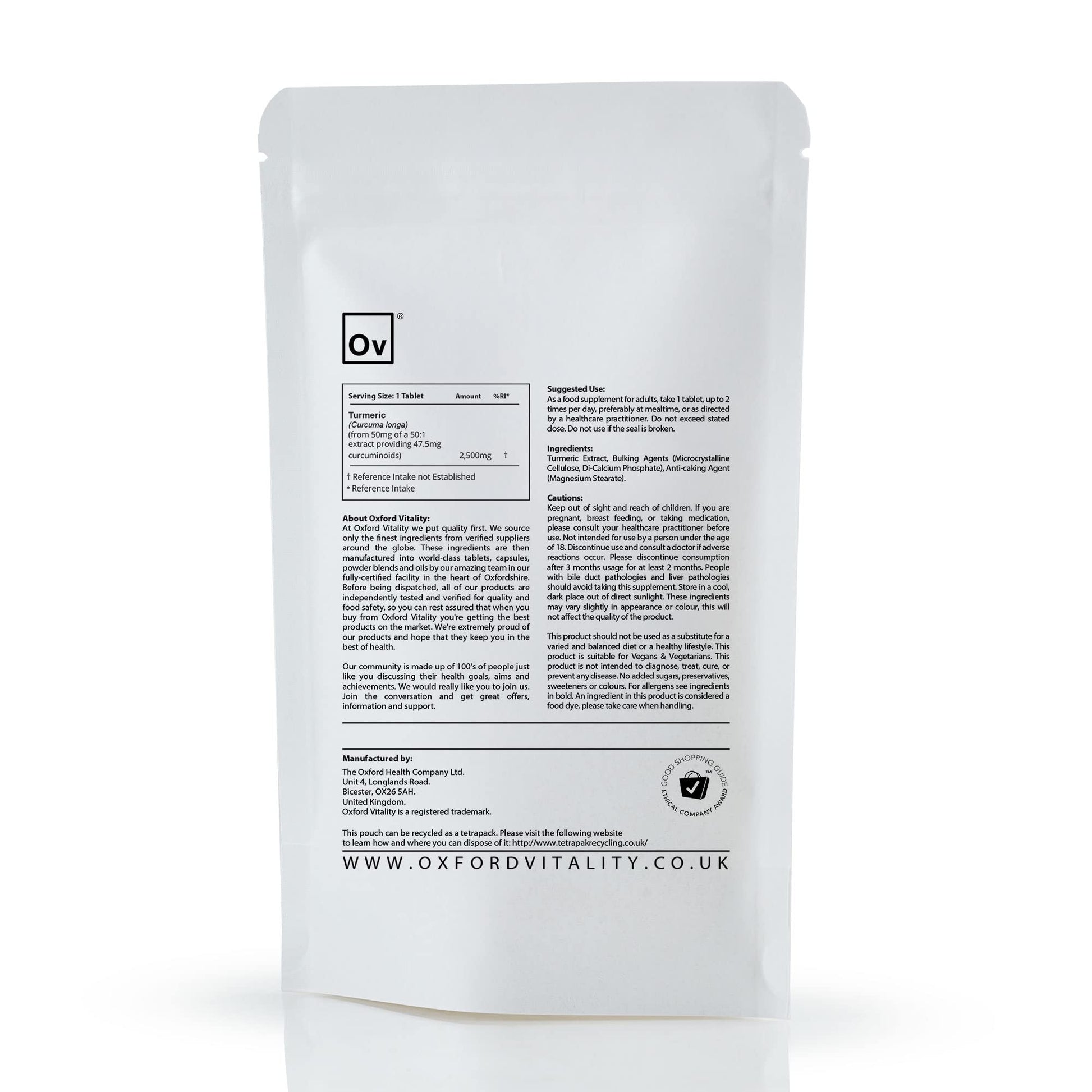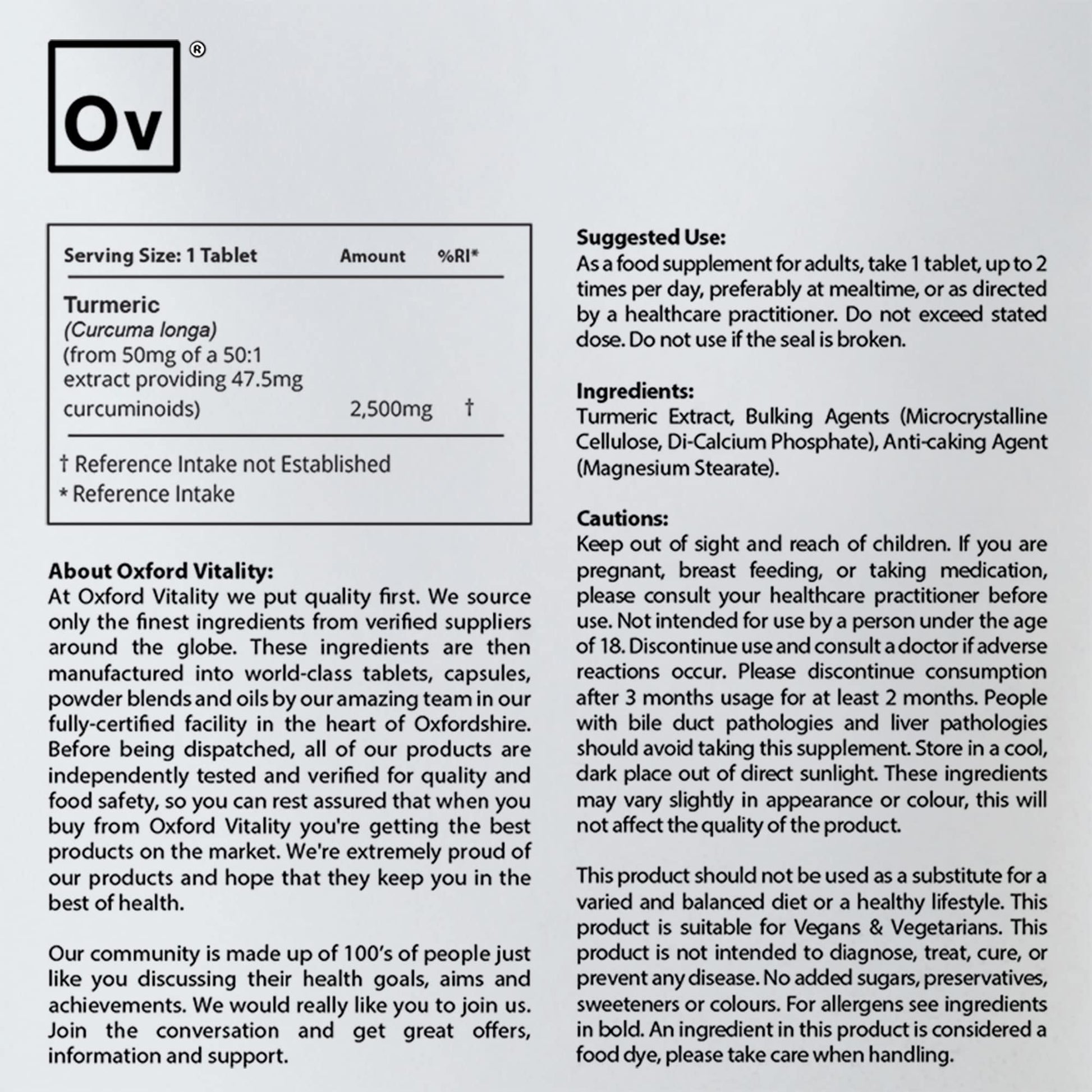 Ov OXFORD VITALITY Turmeric Tablets | High Strength 2,500mg | 95% Curcumin Supplement | for Inflammation Digestive Health & Joint Support | Made in The UK - Oxford Vitality