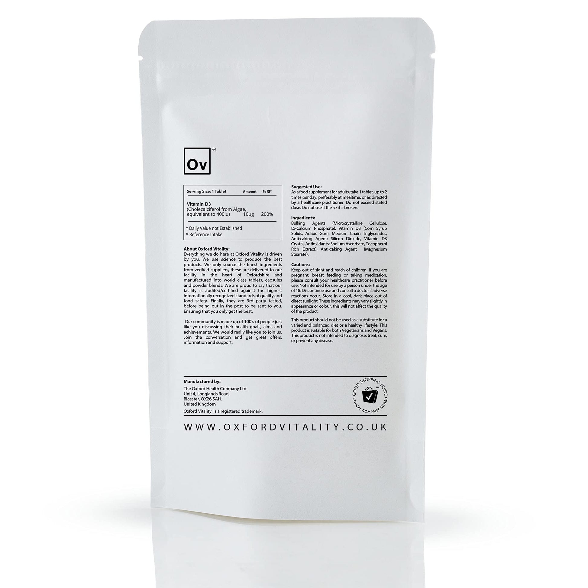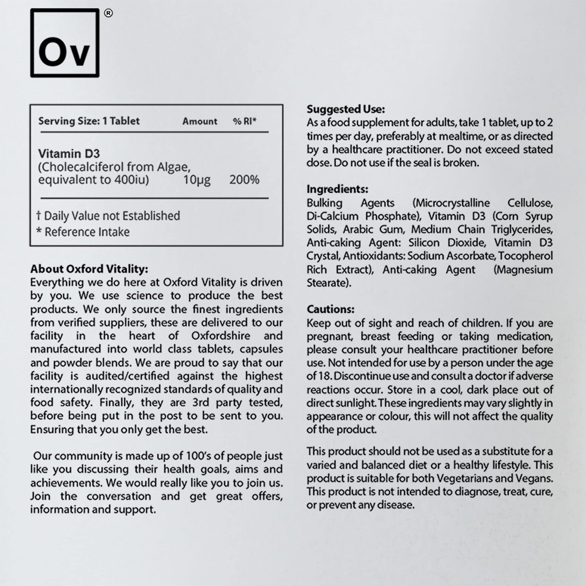 Ov OXFORD VITALITY Vegan Vitamin D3 400iu Tablets | Muscles, Immunity, Bones, Teeth | Oxford Vitality (120)